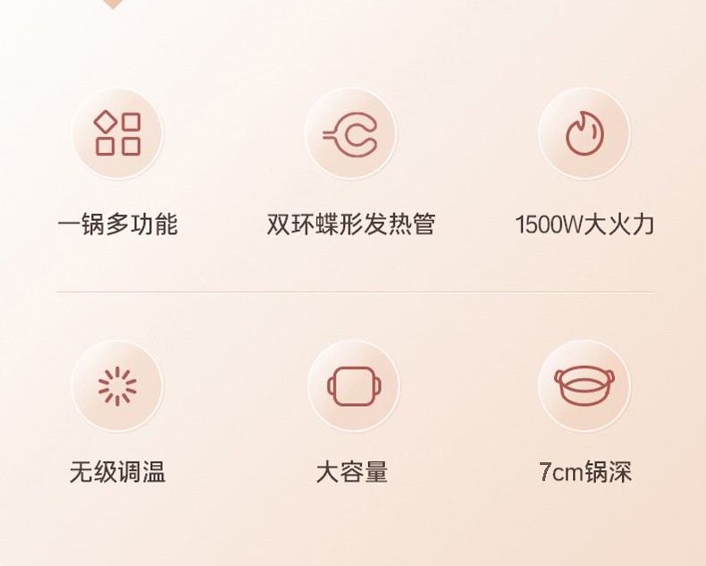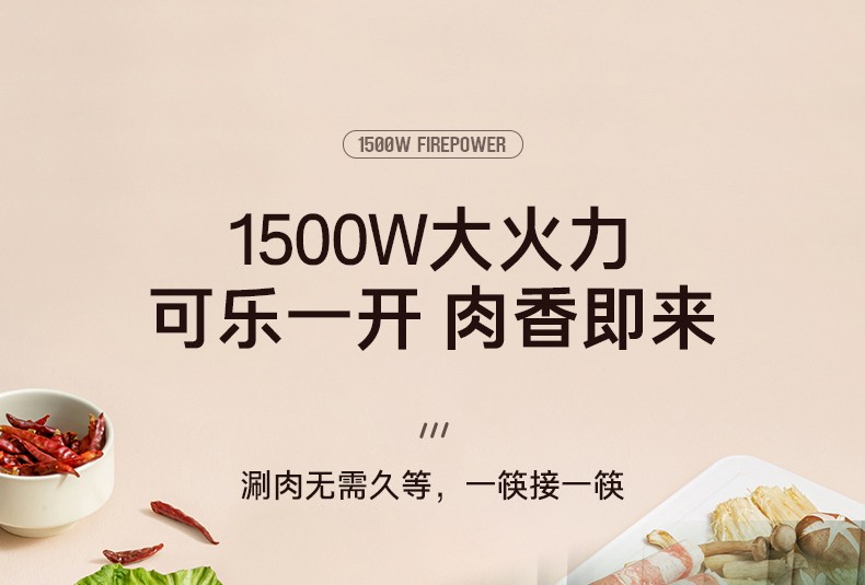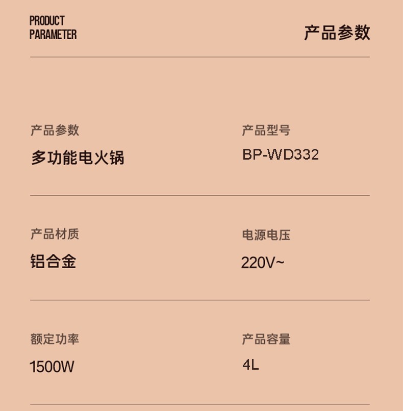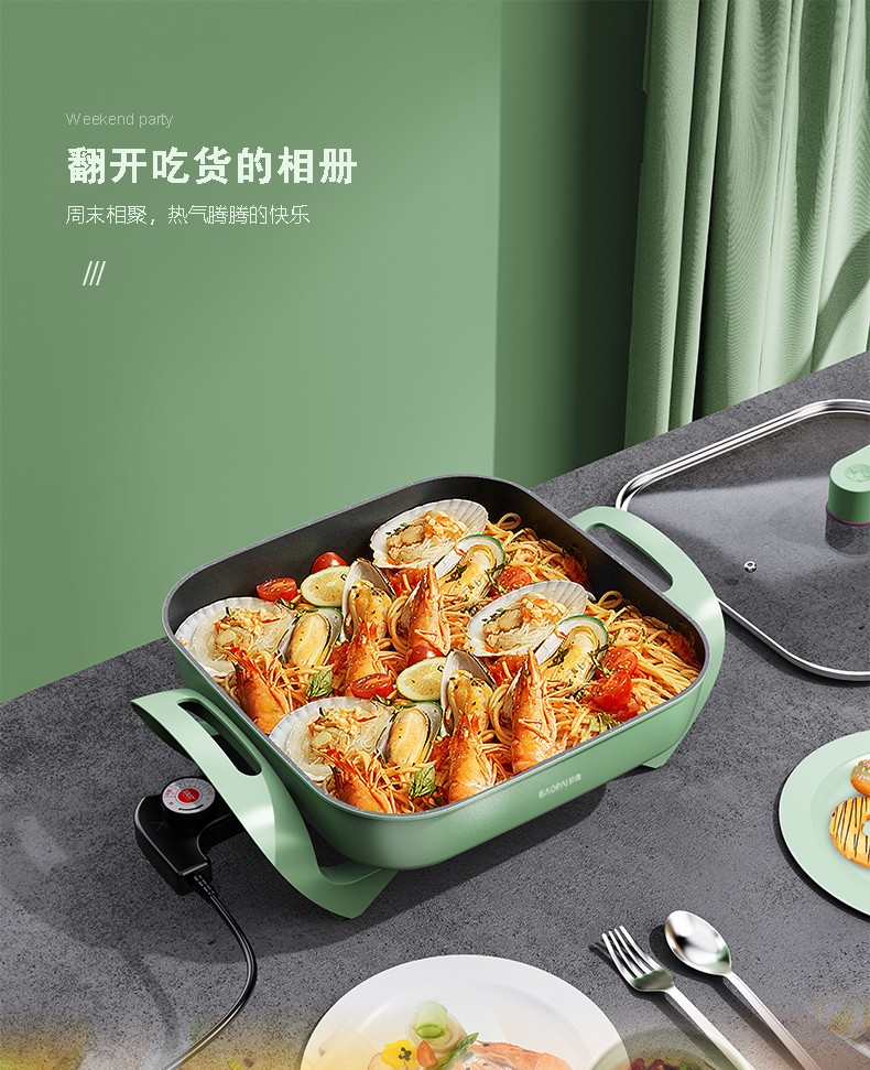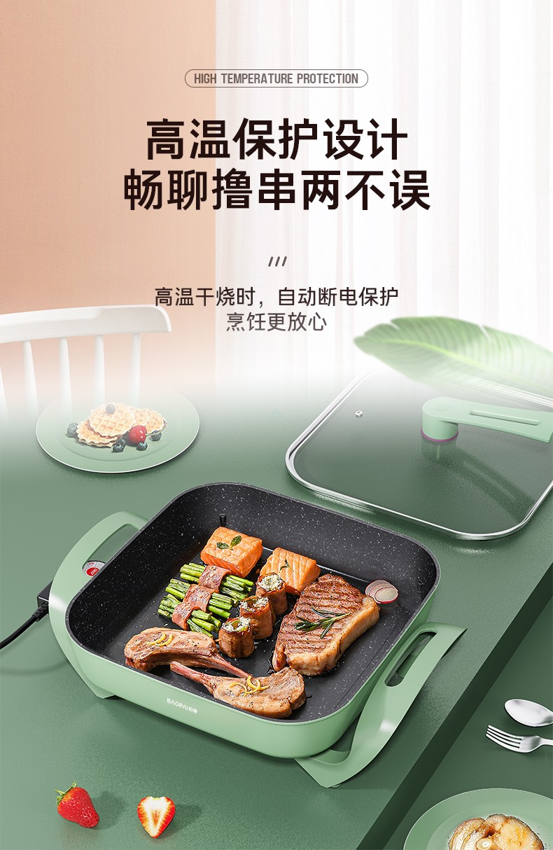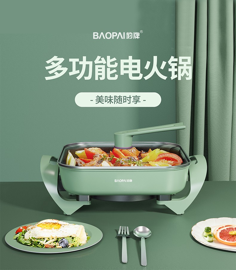 豹牌 多功能电火锅 4L 分离式温控旋钮调节 1500W BP-WD332