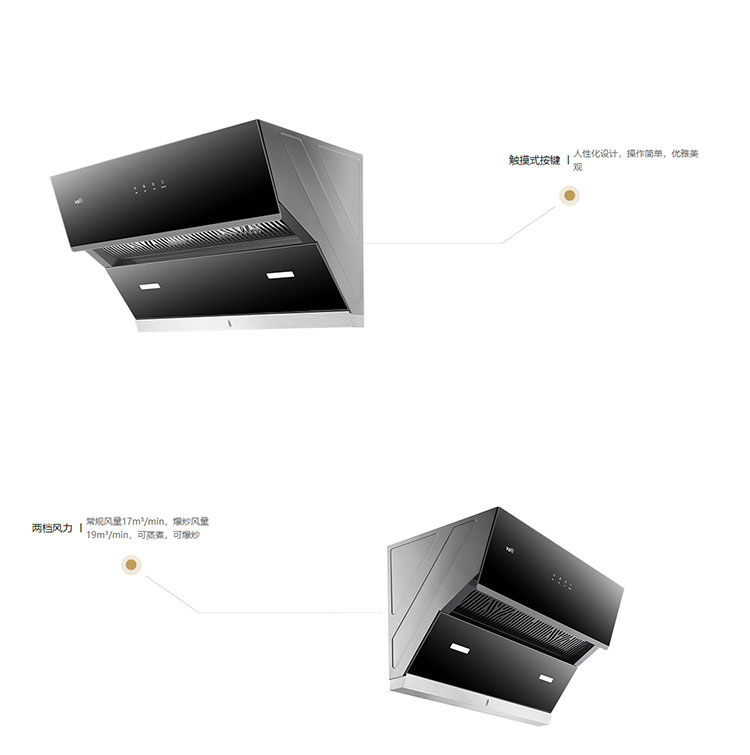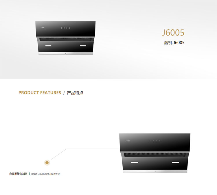 华帝VATTI钢化玻璃烟机J6005触摸式按键自动延时功能防撞头设计