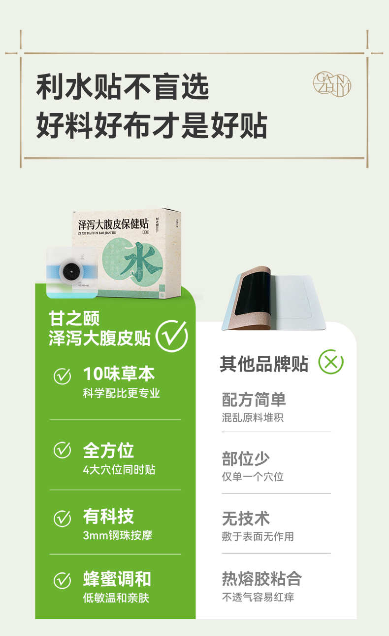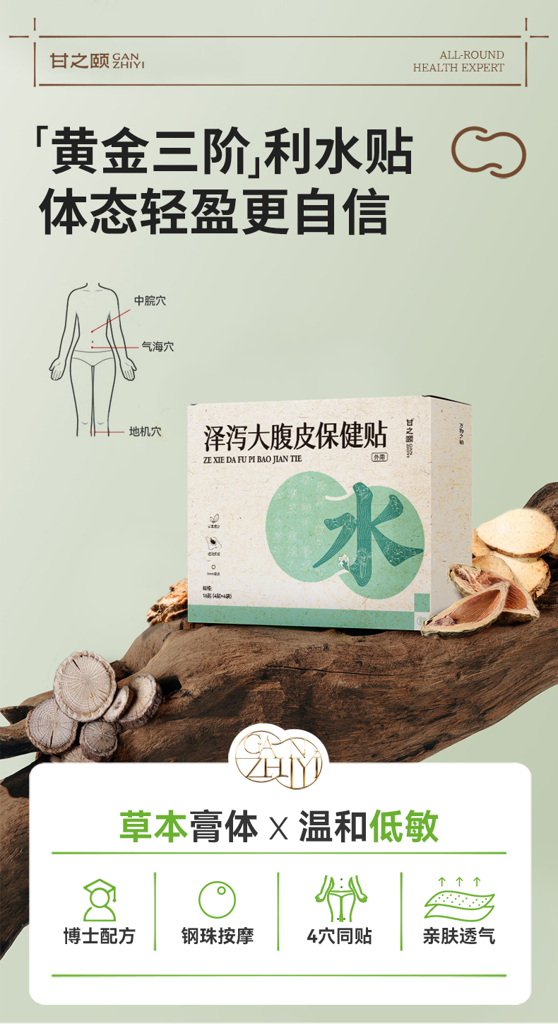 甘之颐 泽泻贴 大腹皮贴 轻盈贴 草本植萃贴 泽泄茯苓配穴贴敷亲服渗透 4贴/袋*4袋/盒