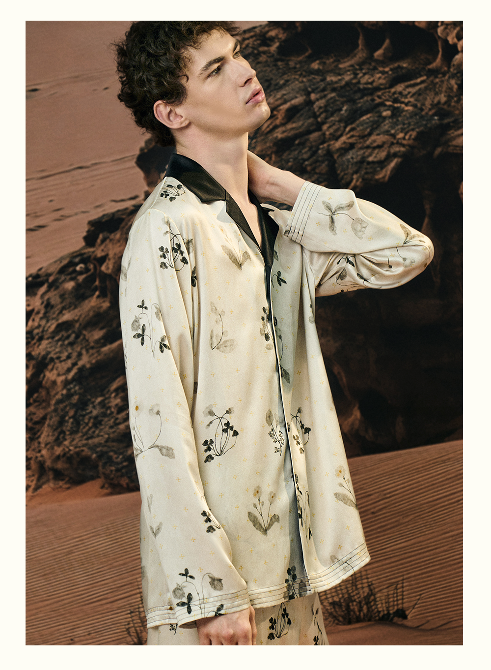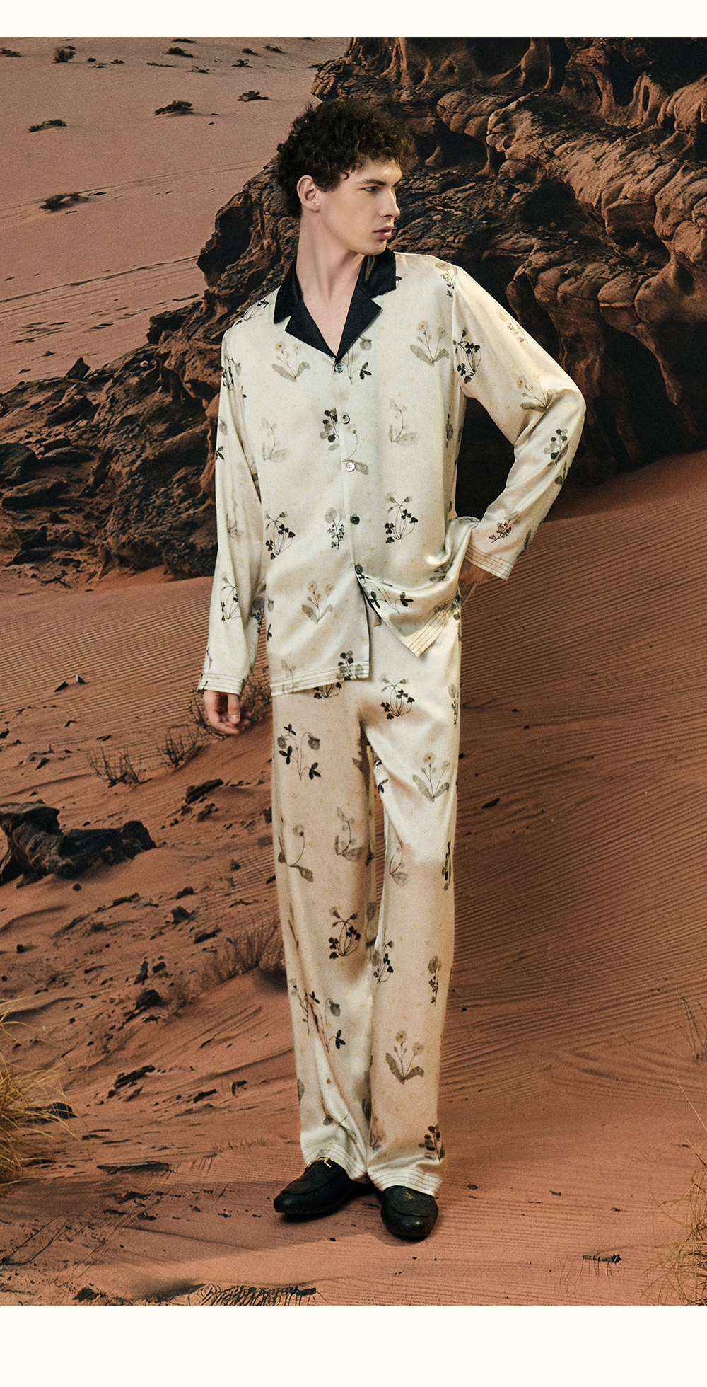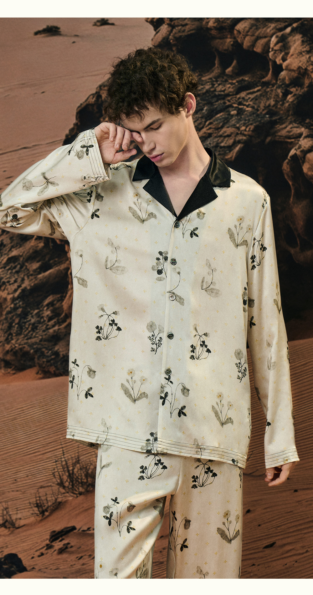 Solo seta22姆米男士真丝印花睡衣套装桑蚕丝家居服2025秋季新款