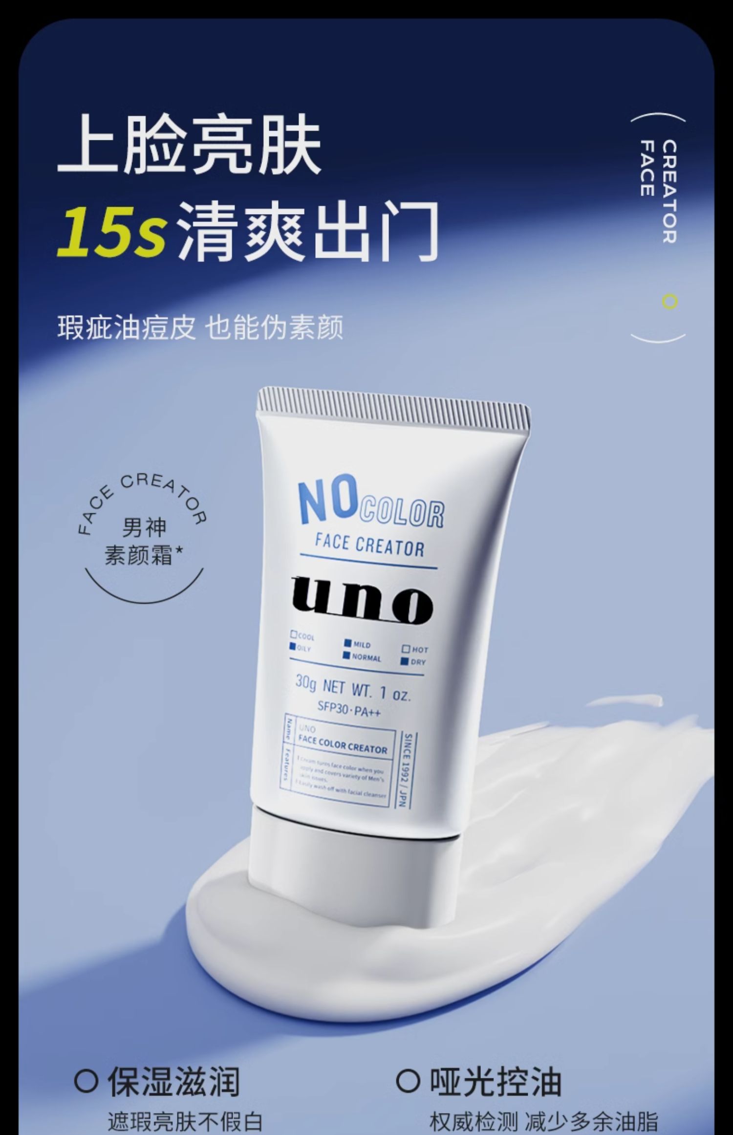 【保税仓】UNO/吾诺 男士无色抗UV面部底霜30g/支