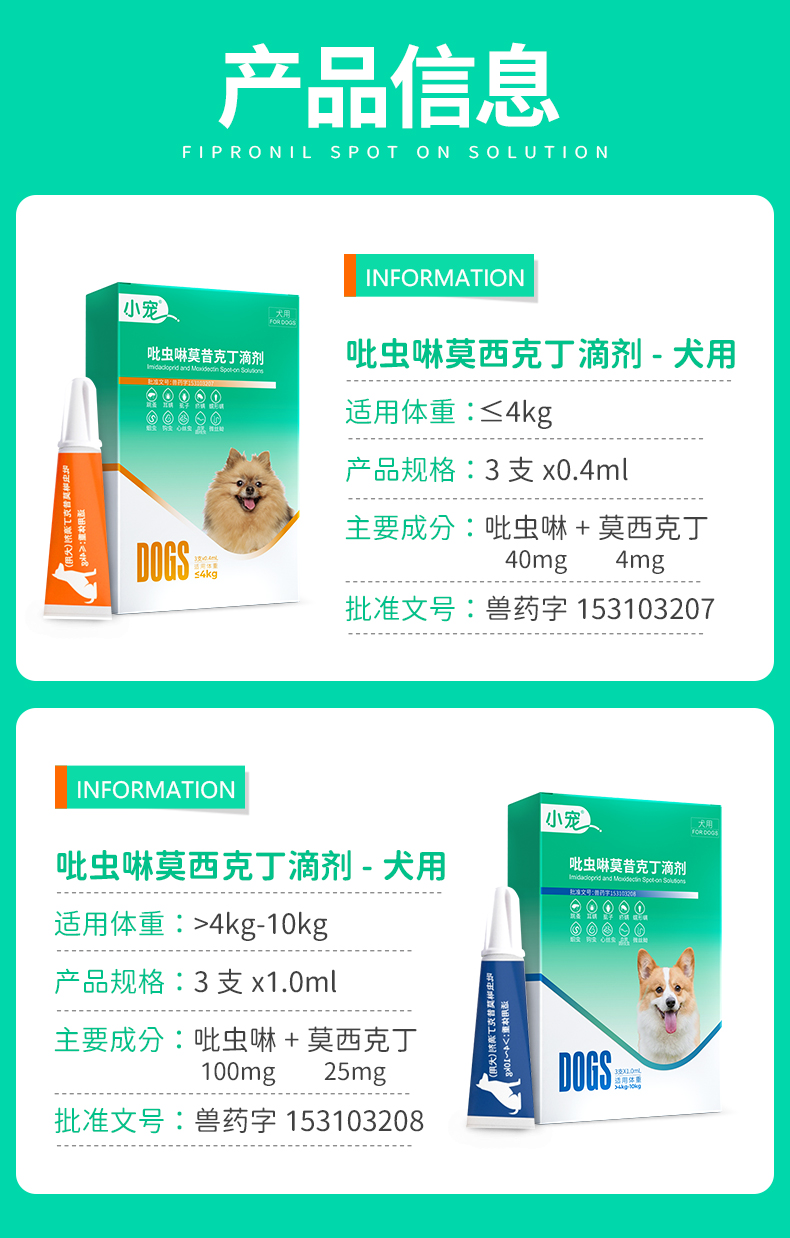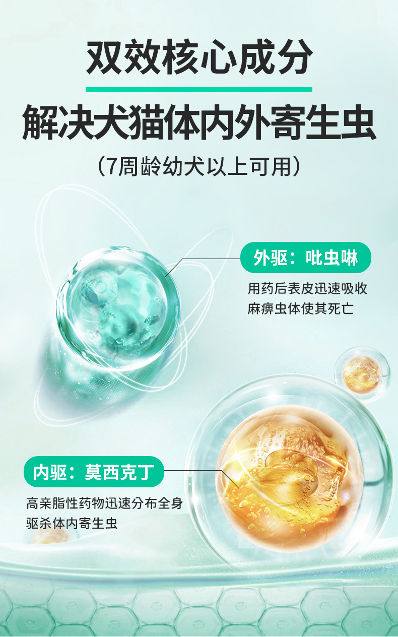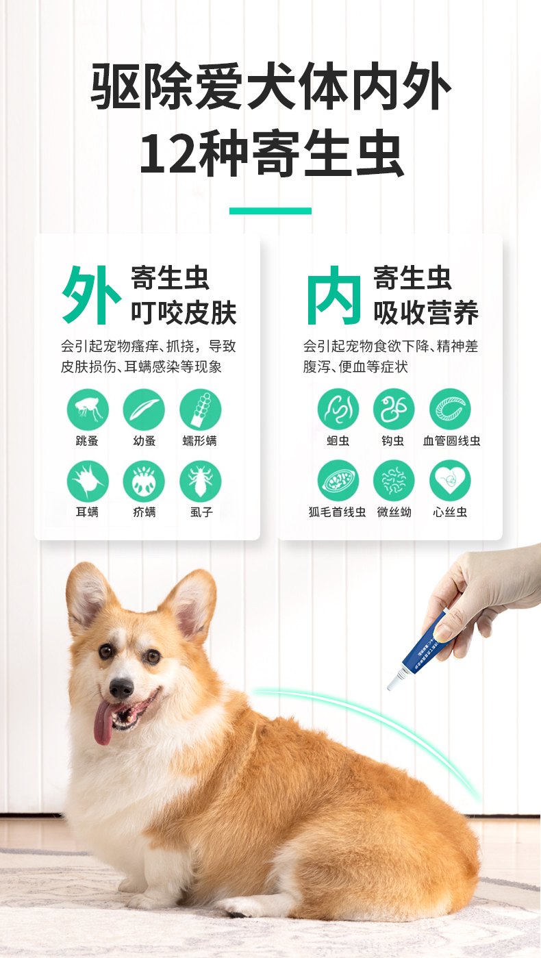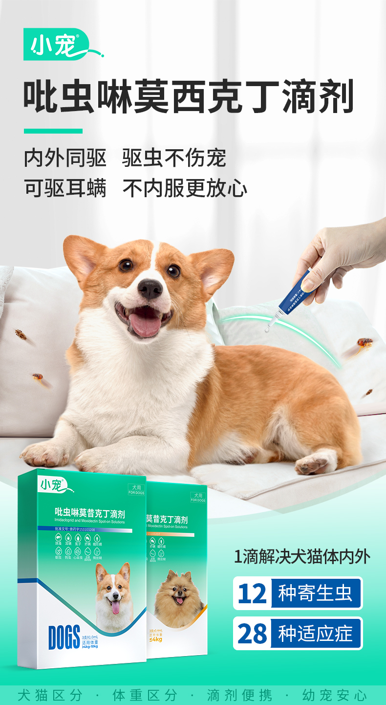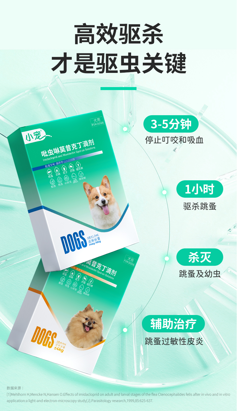 小宠体内外一体同驱 驱虫药 吡虫啉莫昔克丁滴剂 3支装(狗用)
