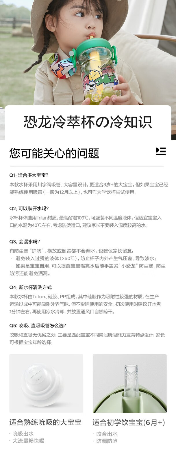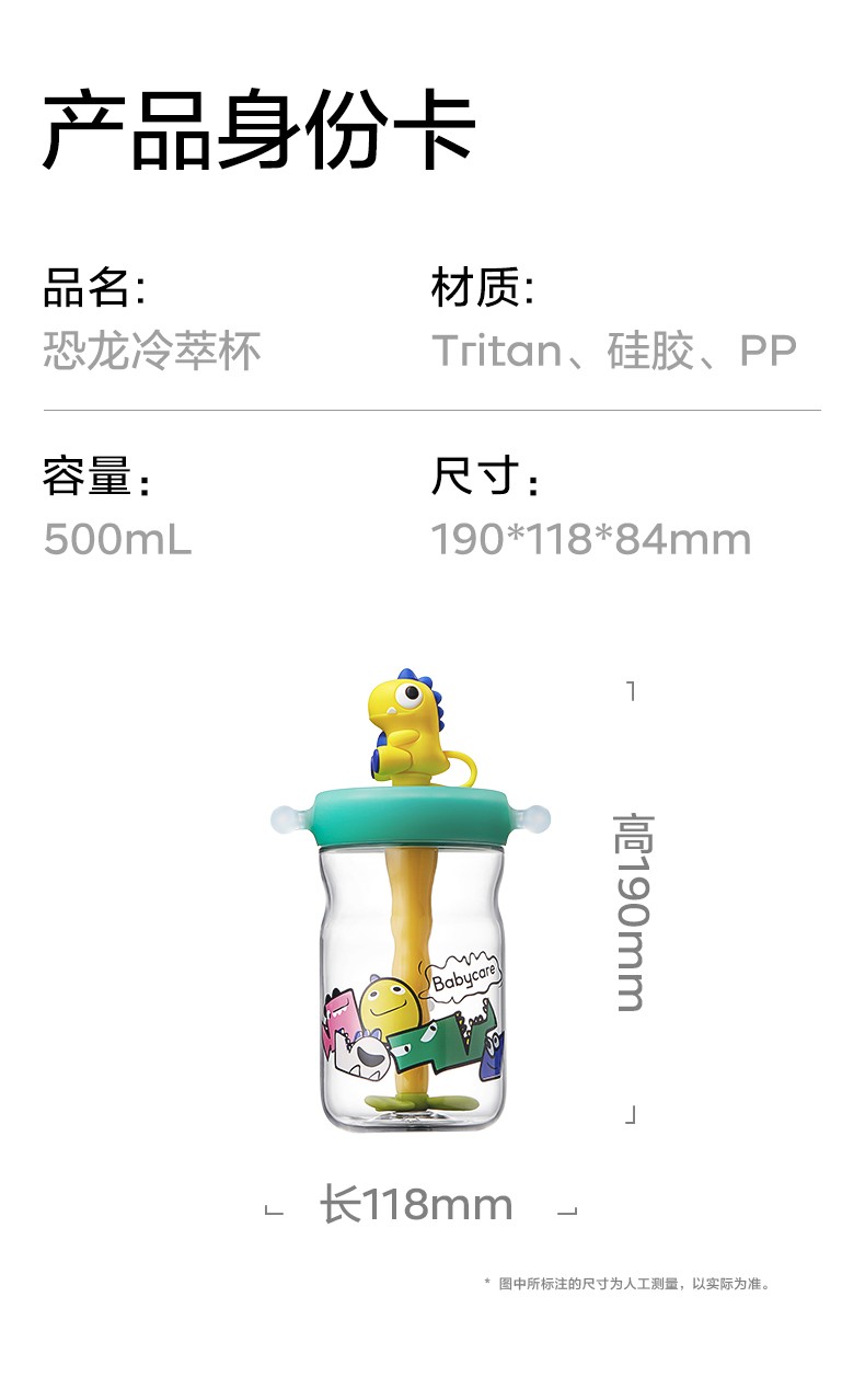 Babycare 儿童吸管杯-霸王龙托比吸管水杯 500ml-莱特玫 BC2204012