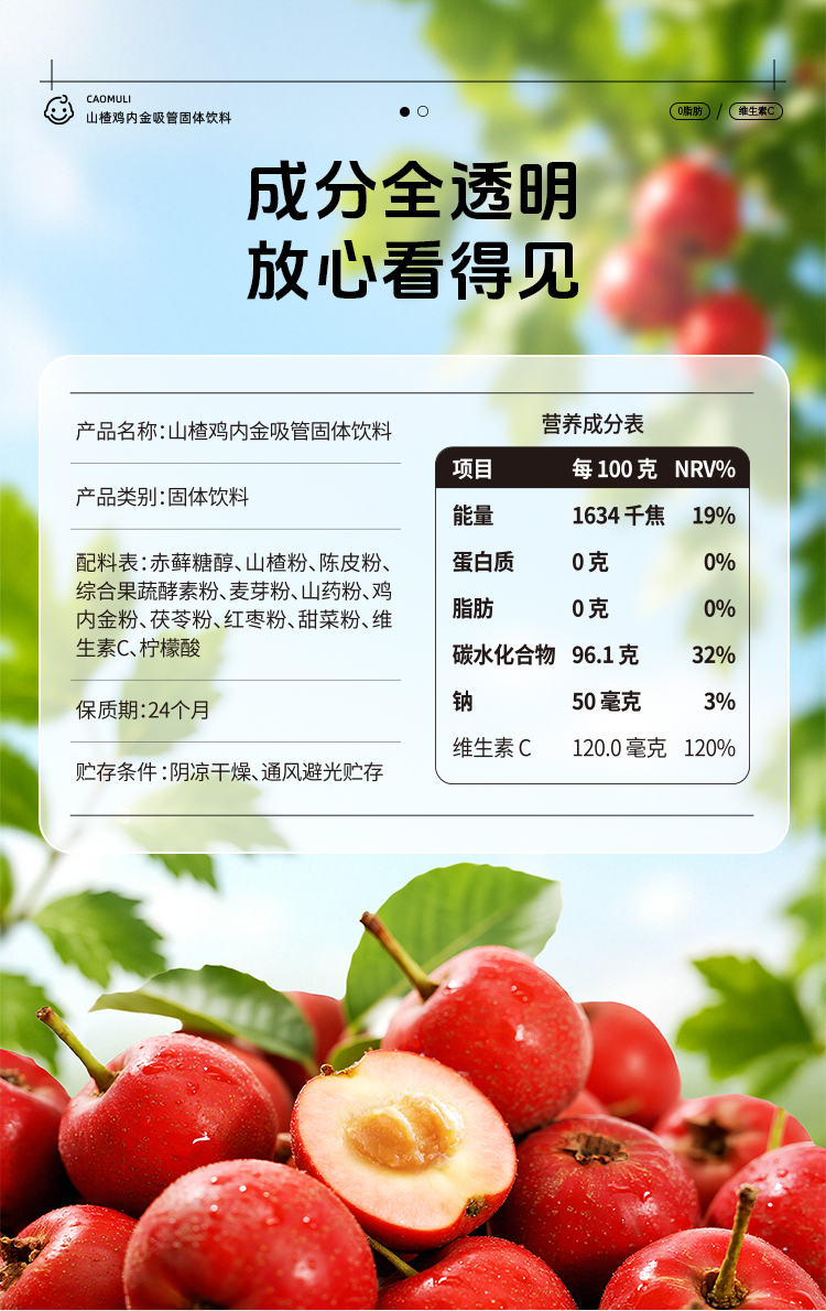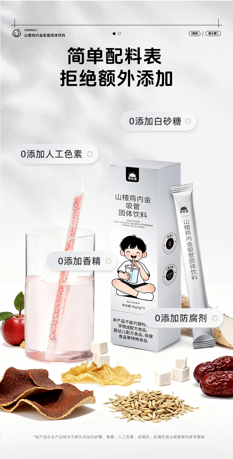 【精心配比】草牧里 山楂鸡内金吸管固体饮料 5g*7根/盒 甄选多种营养食材