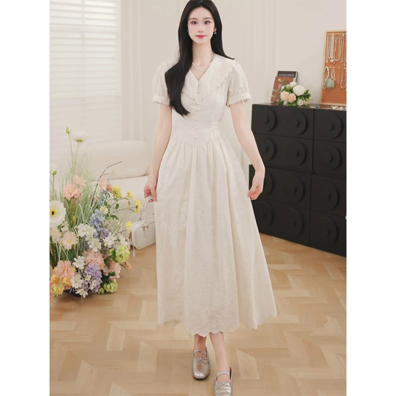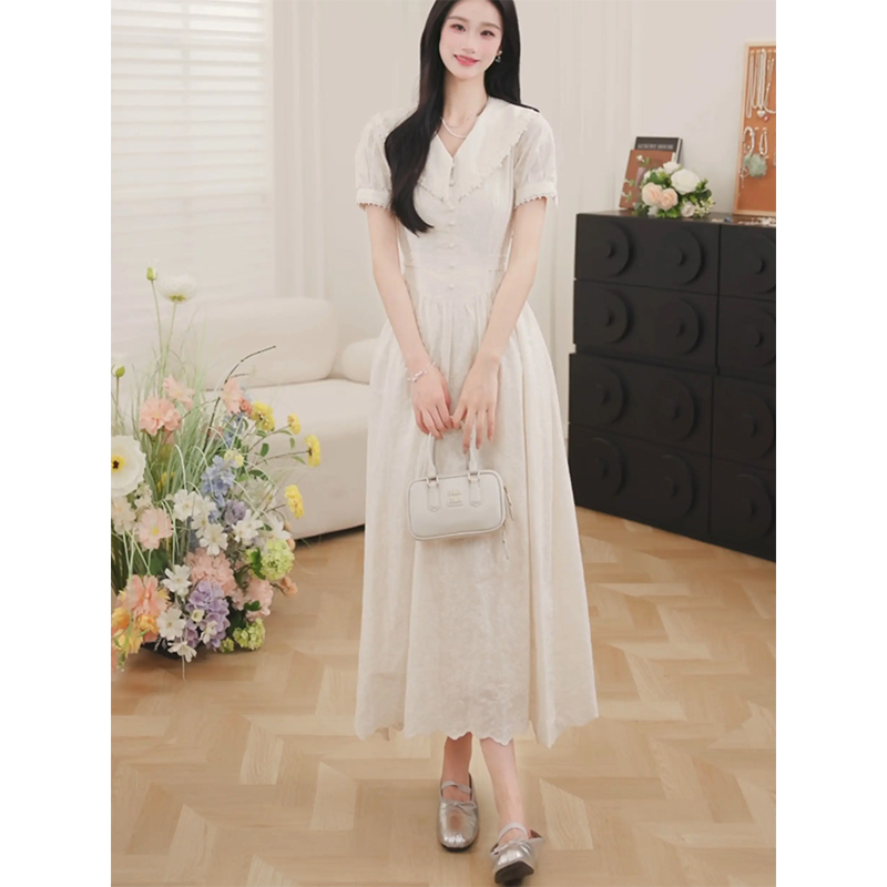 【65折秒杀】鹿向南「罗马夏日」简约海军领短袖连衣裙女设计感减龄夏季长裙子QYM002579