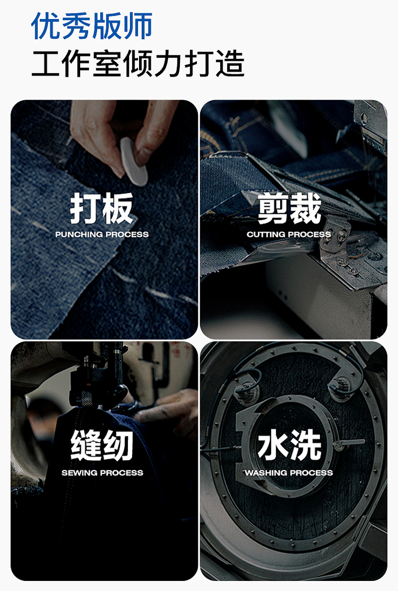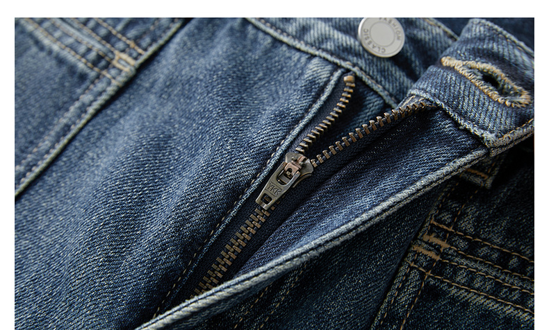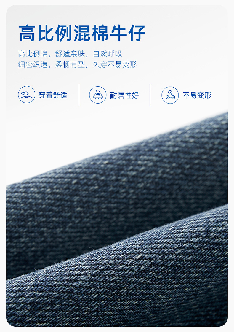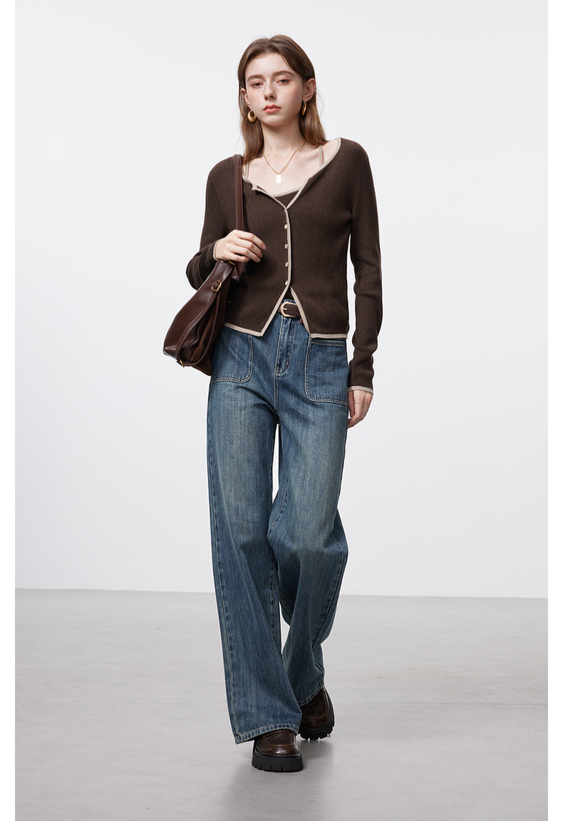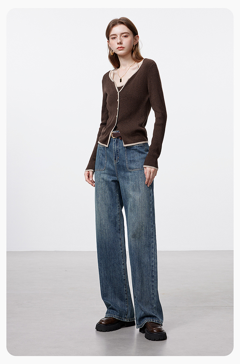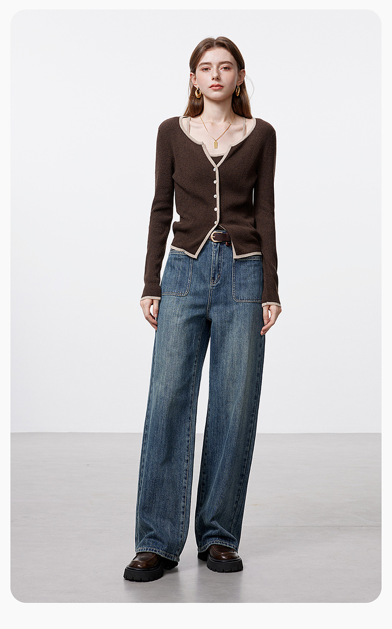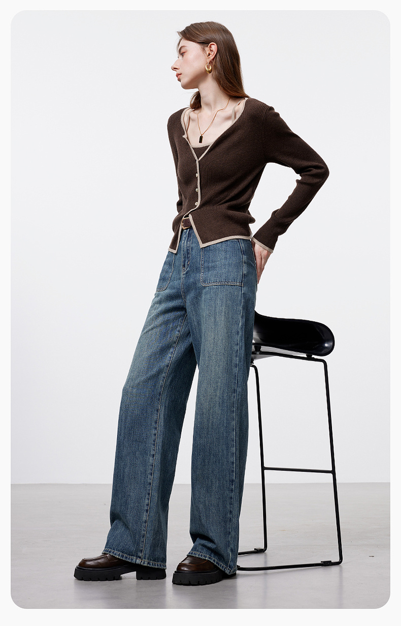 三彩2026春季新款复古水洗牛仔裤高腰宽松阔腿裤长裤大口袋M