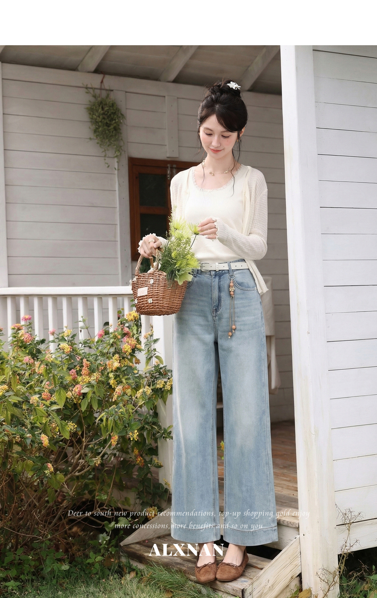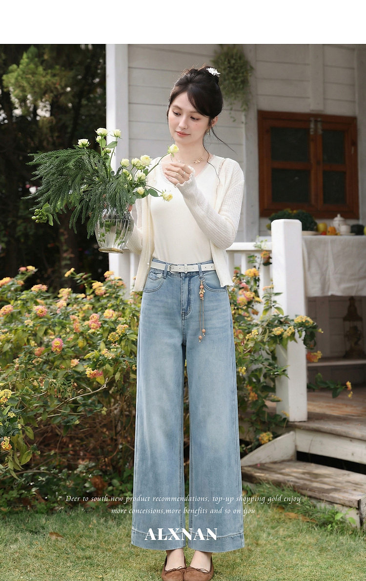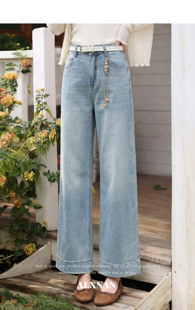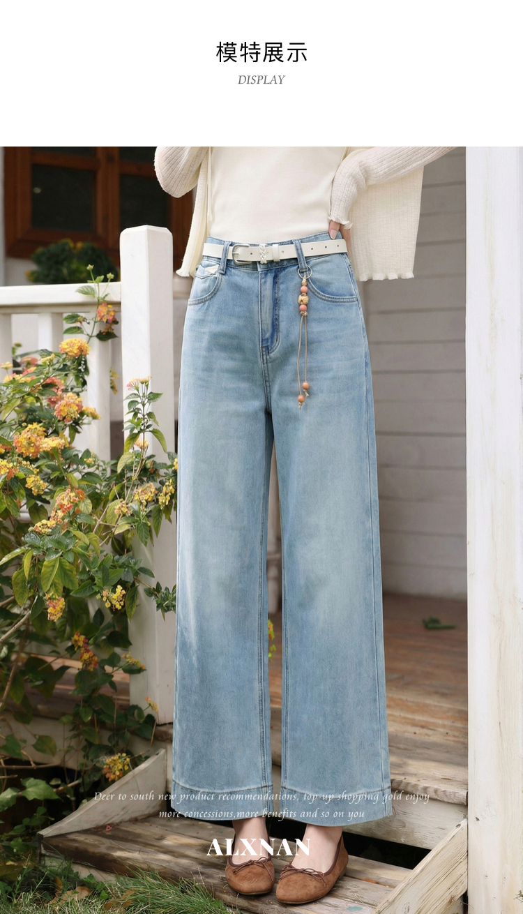 鹿向南「左岸烟管」复古浅蓝色垂感牛仔裤女百搭宽松显瘦九分裤子
