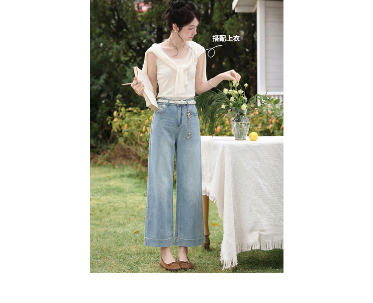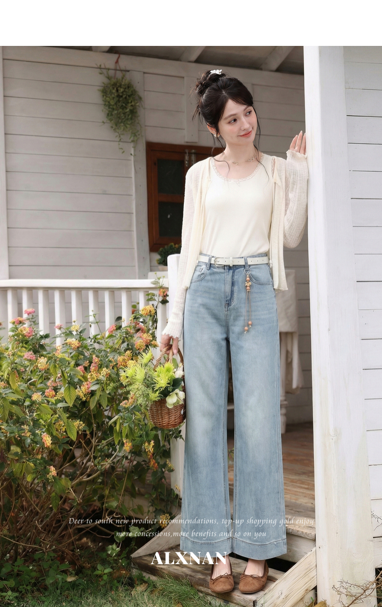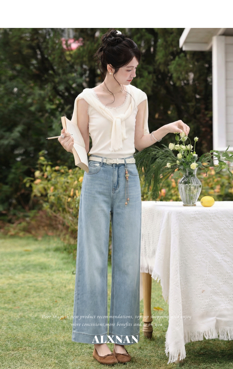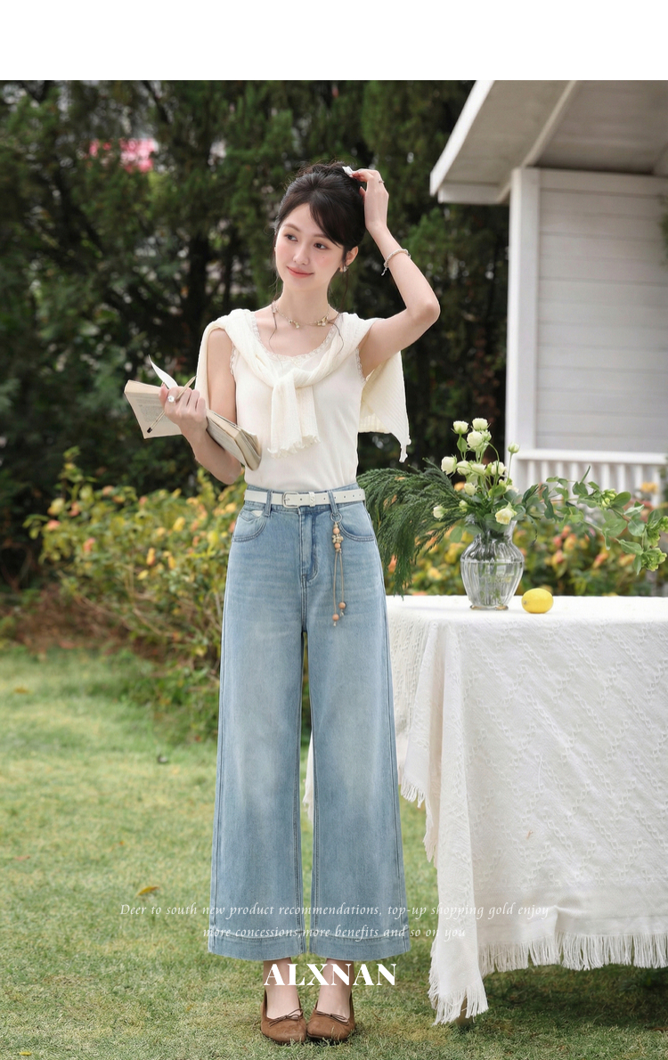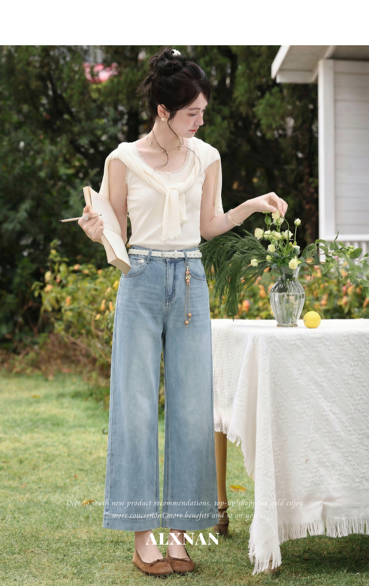 鹿向南「左岸烟管」复古浅蓝色垂感牛仔裤女百搭宽松显瘦九分裤子