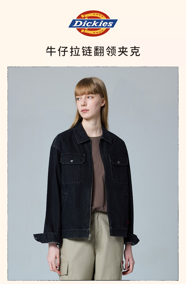 Dickies夹克 复古潮流简约拉链翻领情侣男女牛仔外套DK0A889M