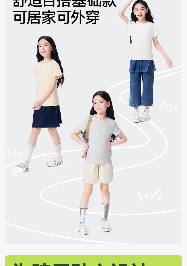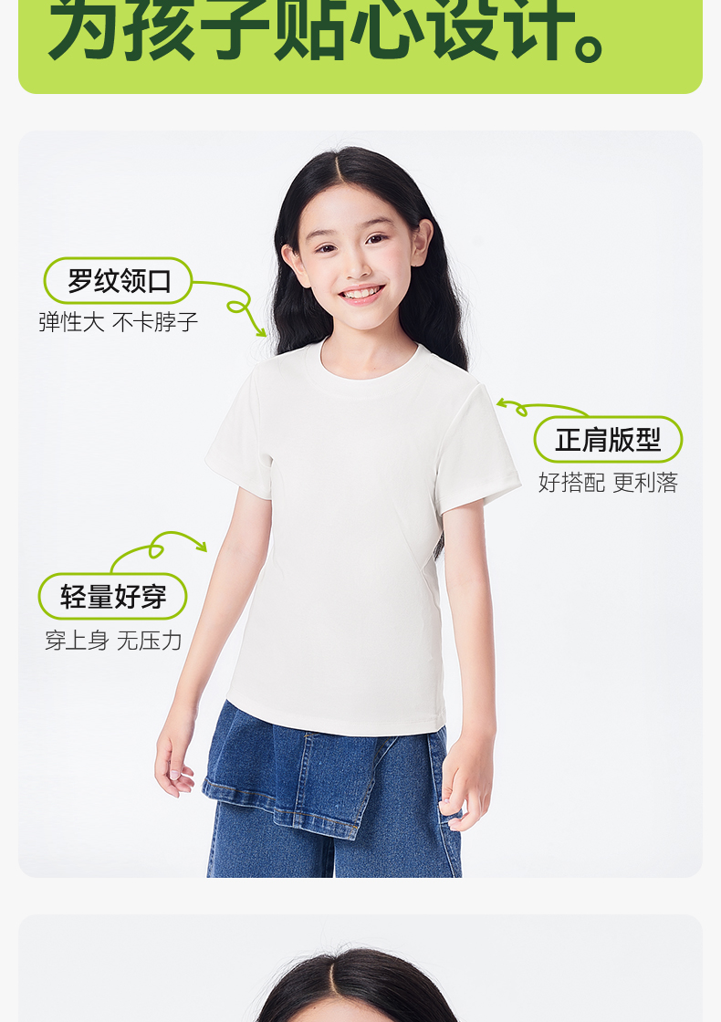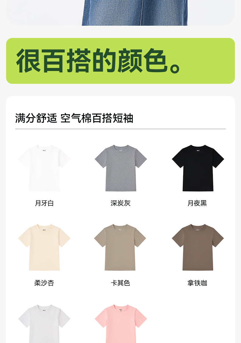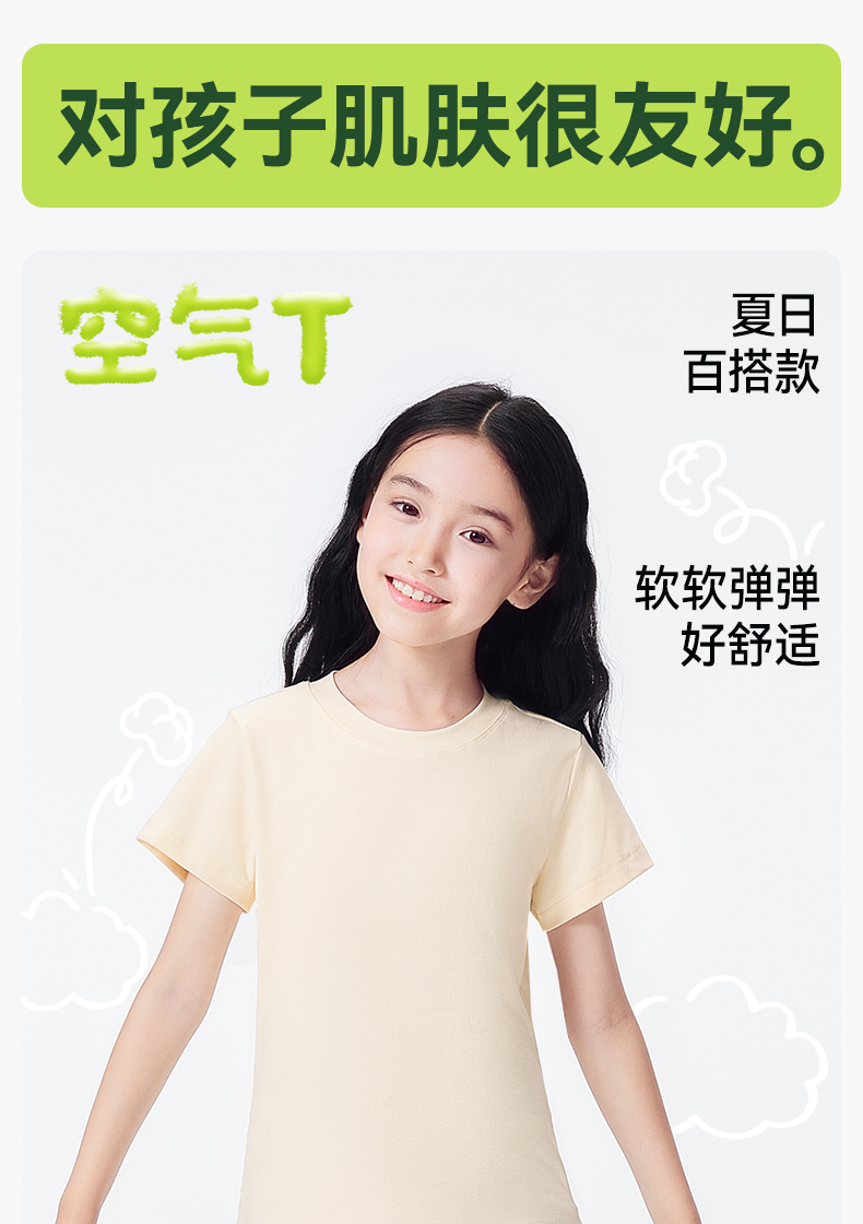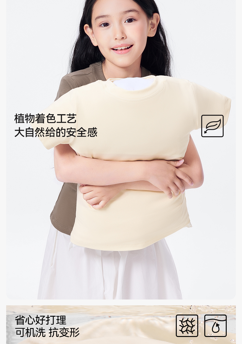 「棉的美学」纯色短袖T恤夏季新款中大小儿童简约透气亲肤百搭上衣