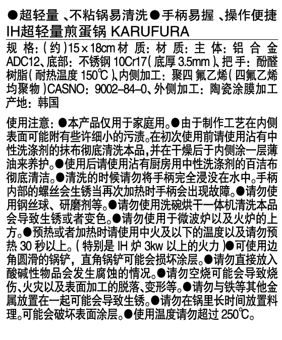 电磁炉用超轻量煎蛋锅 KARUFURA