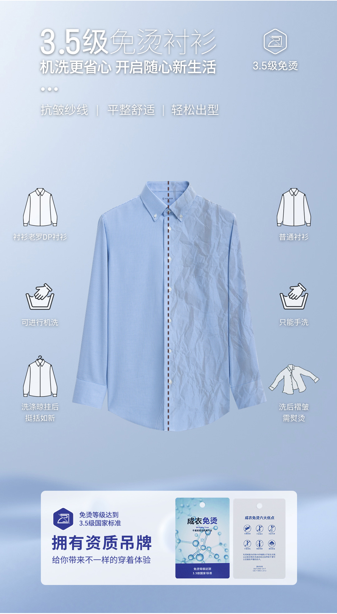 【凌志T1】标准领条纹长袖衬衫免烫四季男士M555