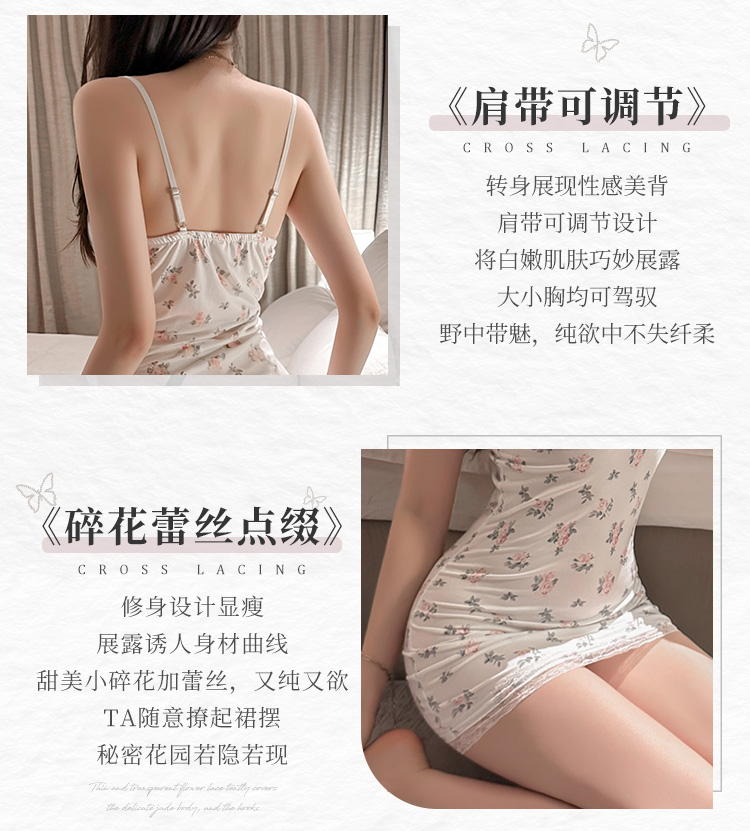 【情趣内衣】霏慕 茶艺千金甜美碎花连衣裙6355