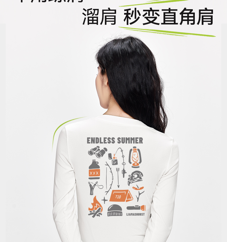 「棉的美学」高级感正肩修身长袖T恤女印花经典圆领舒适打底衫