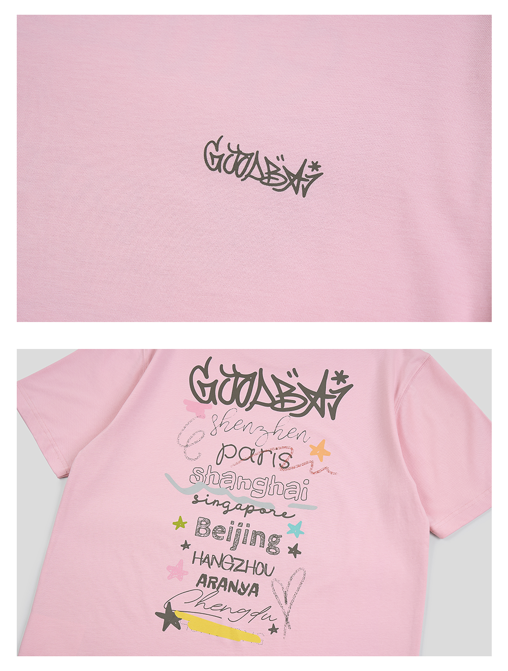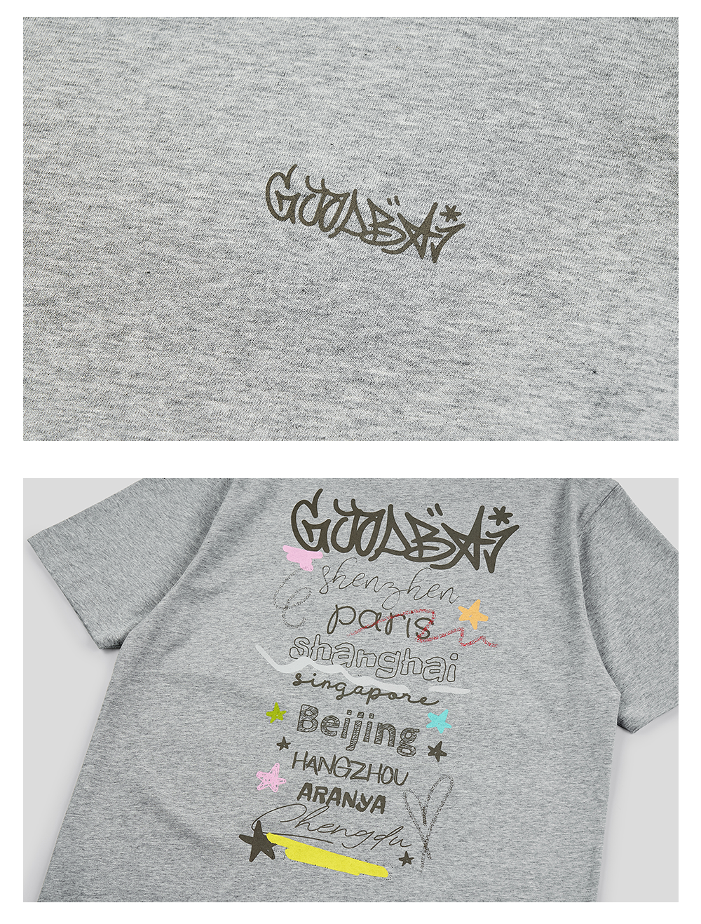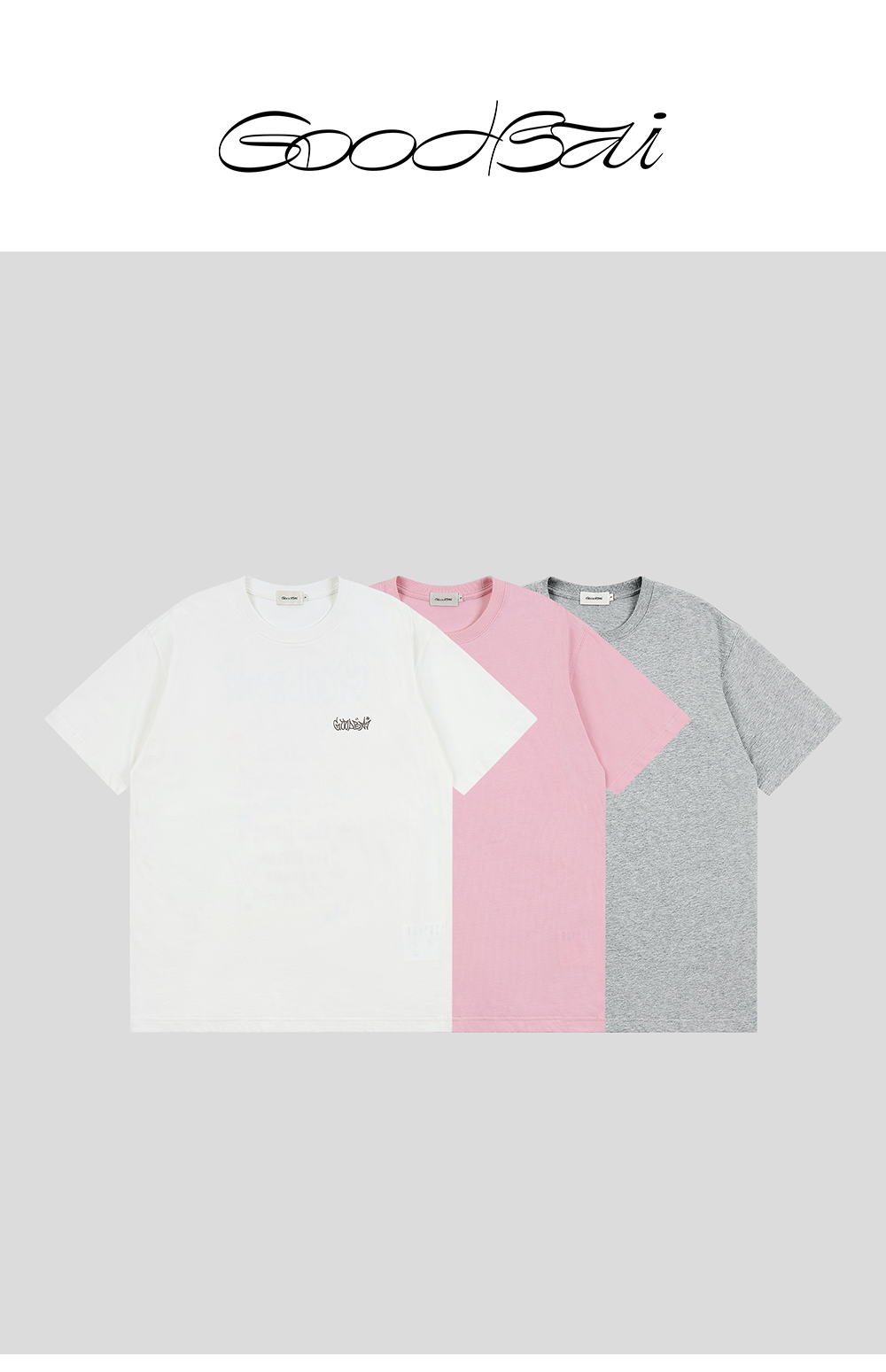 GOODBAI GOODEES 机器小猫logo做旧图案印花撞色oversize长袖T恤