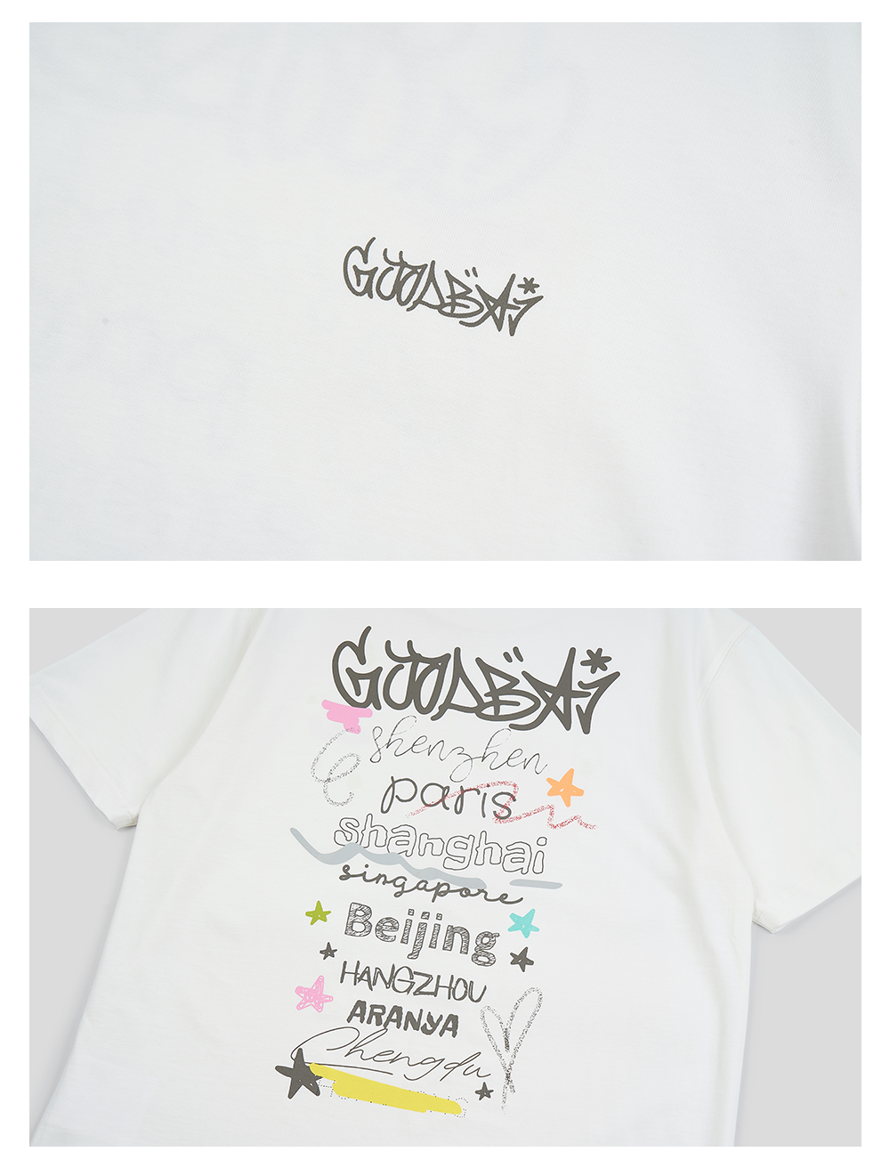 GOODBAI 做旧鸽子logo印花短袖T恤