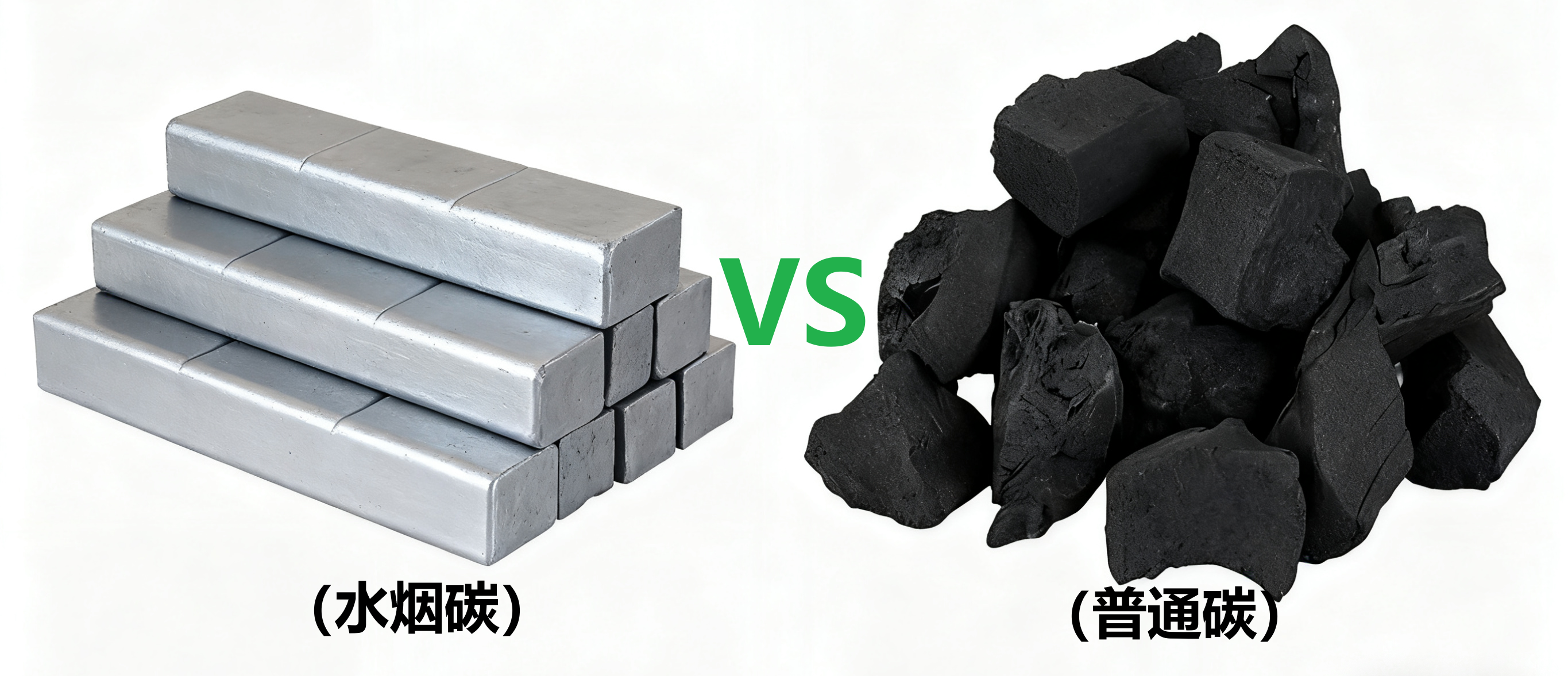普通炭:燃烧不稳定,易爆火星,烟雾大,燃时短。