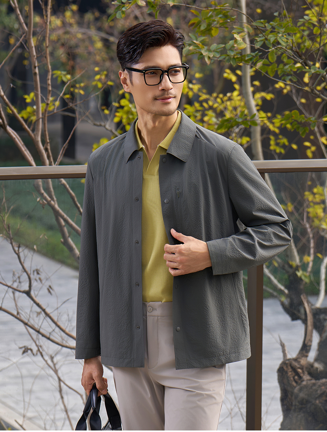 【云盾】抗撕裂肌能格翻领暗扣衬衫夹克261L7J537N[门店专款]