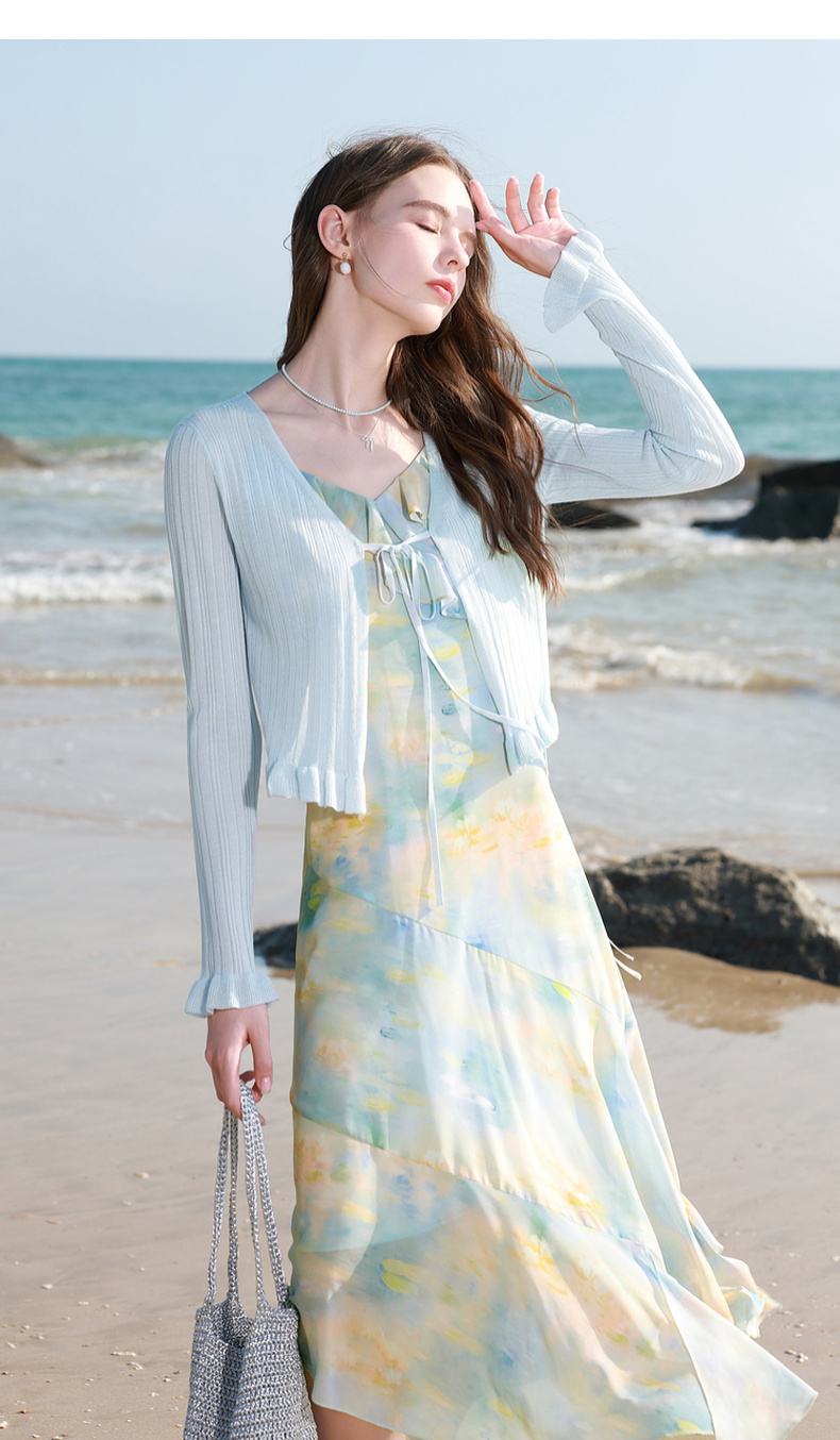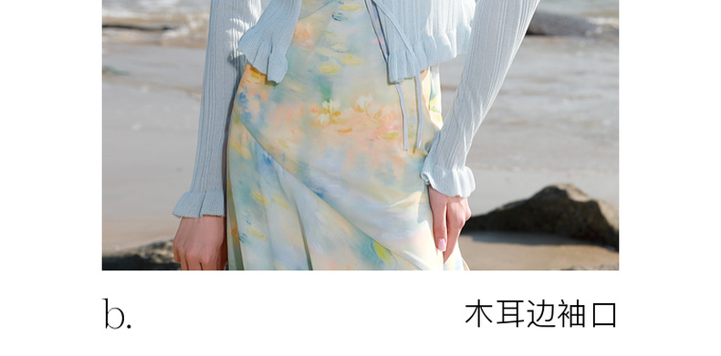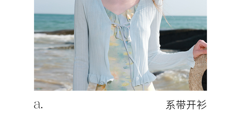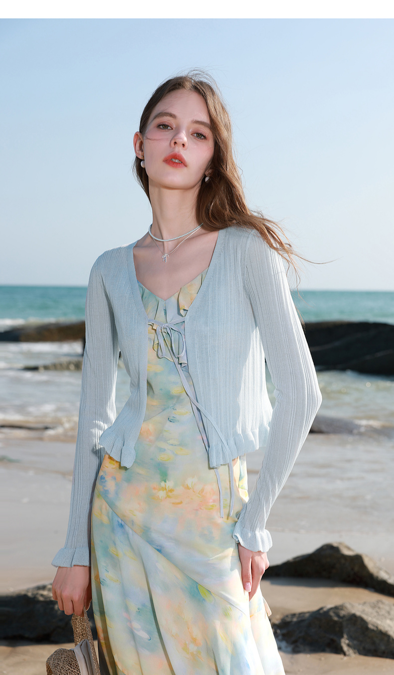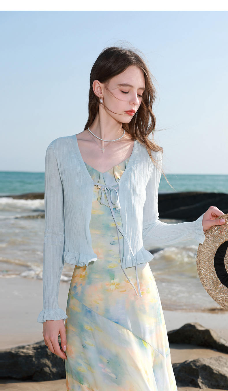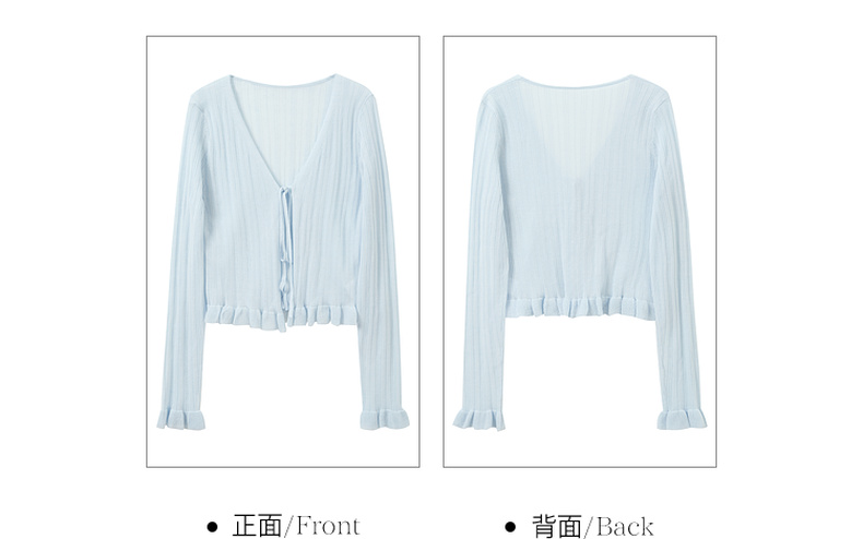 【莱赛尔】三彩2026春季新款系带小开衫长袖木耳边针织衫修身M