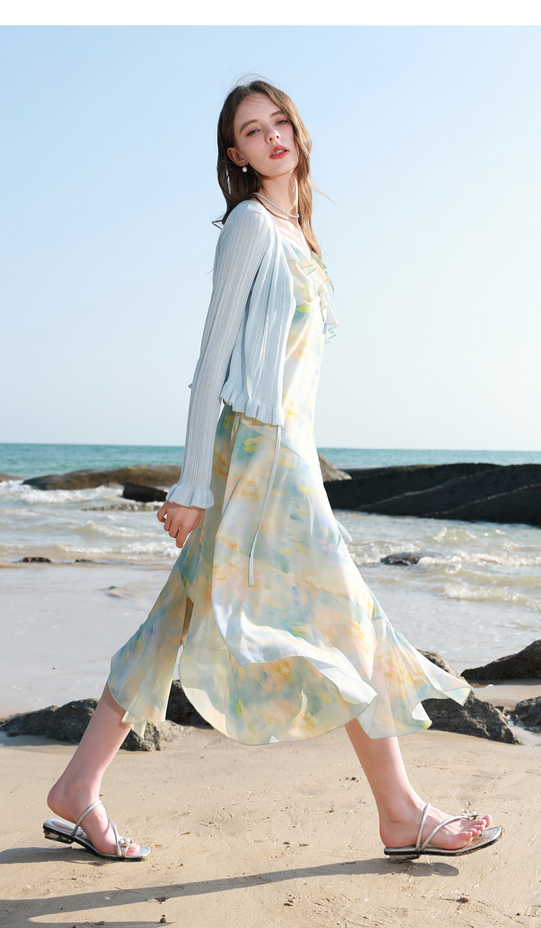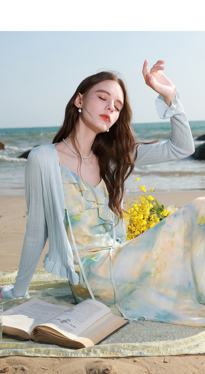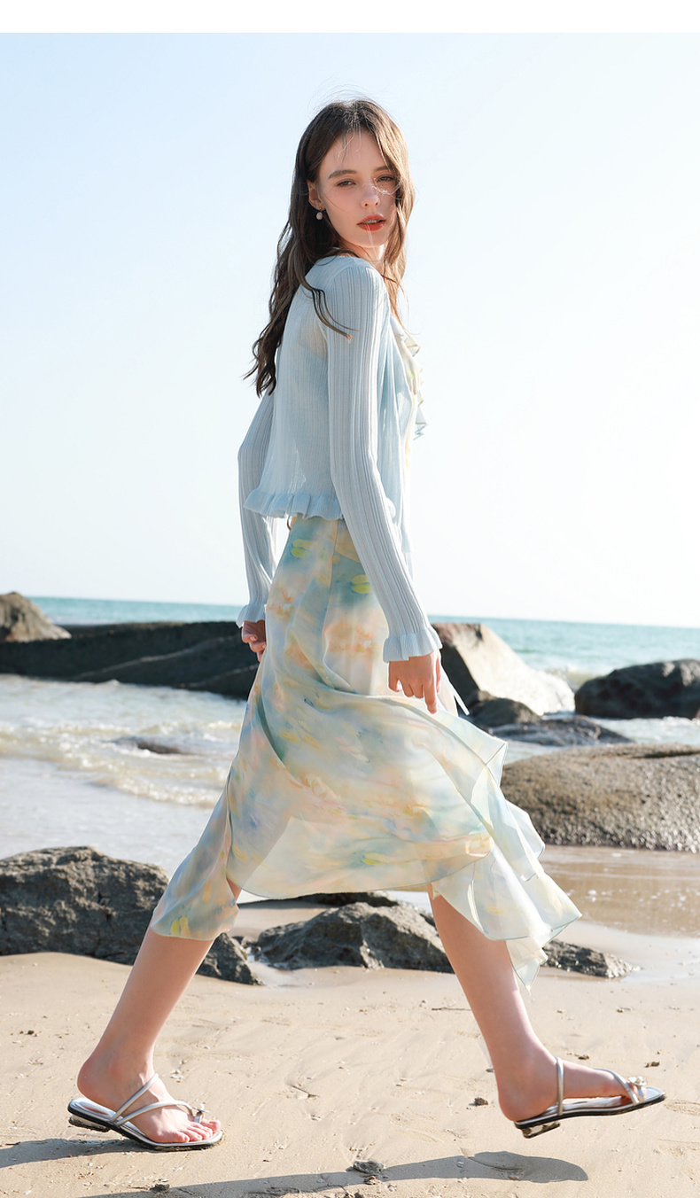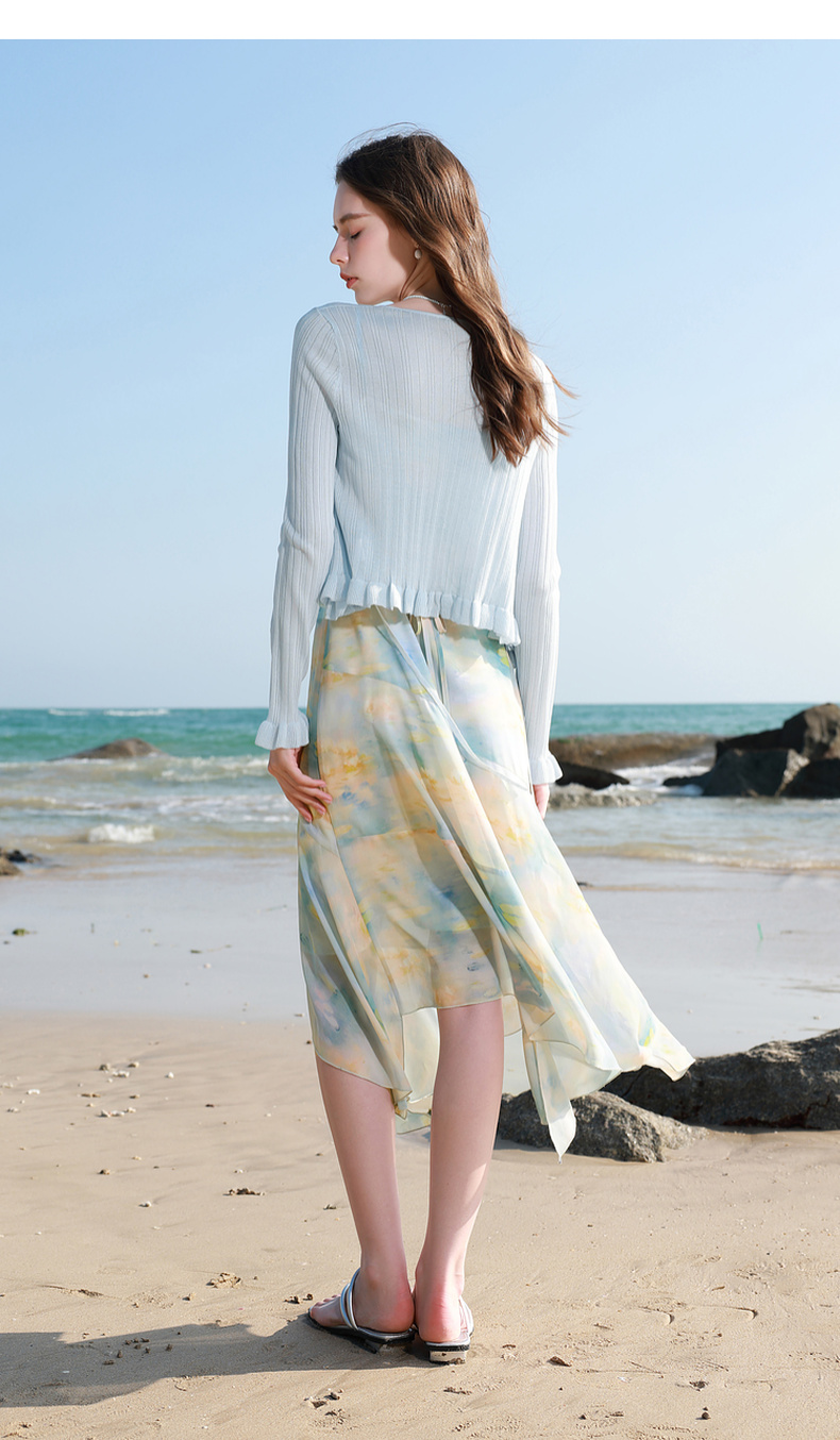 【莱赛尔】三彩2026春季新款系带小开衫长袖木耳边针织衫修身M