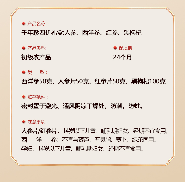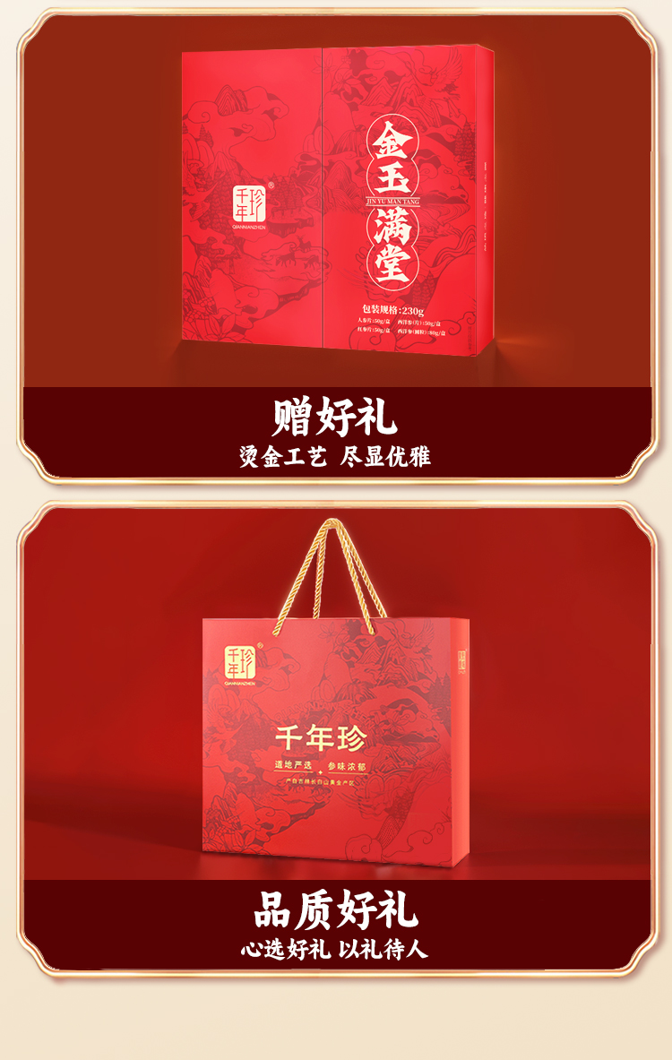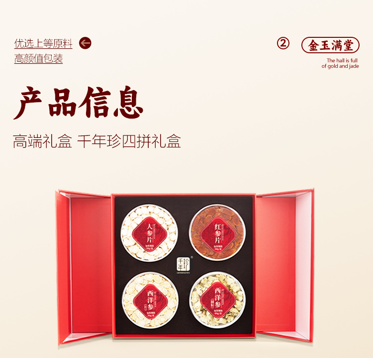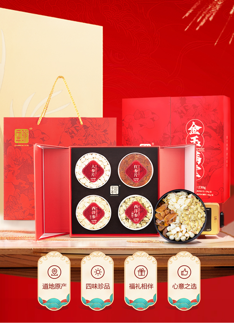 千年珍长白山二等野山参3A礼盒装干参生晒野山参18g/盒