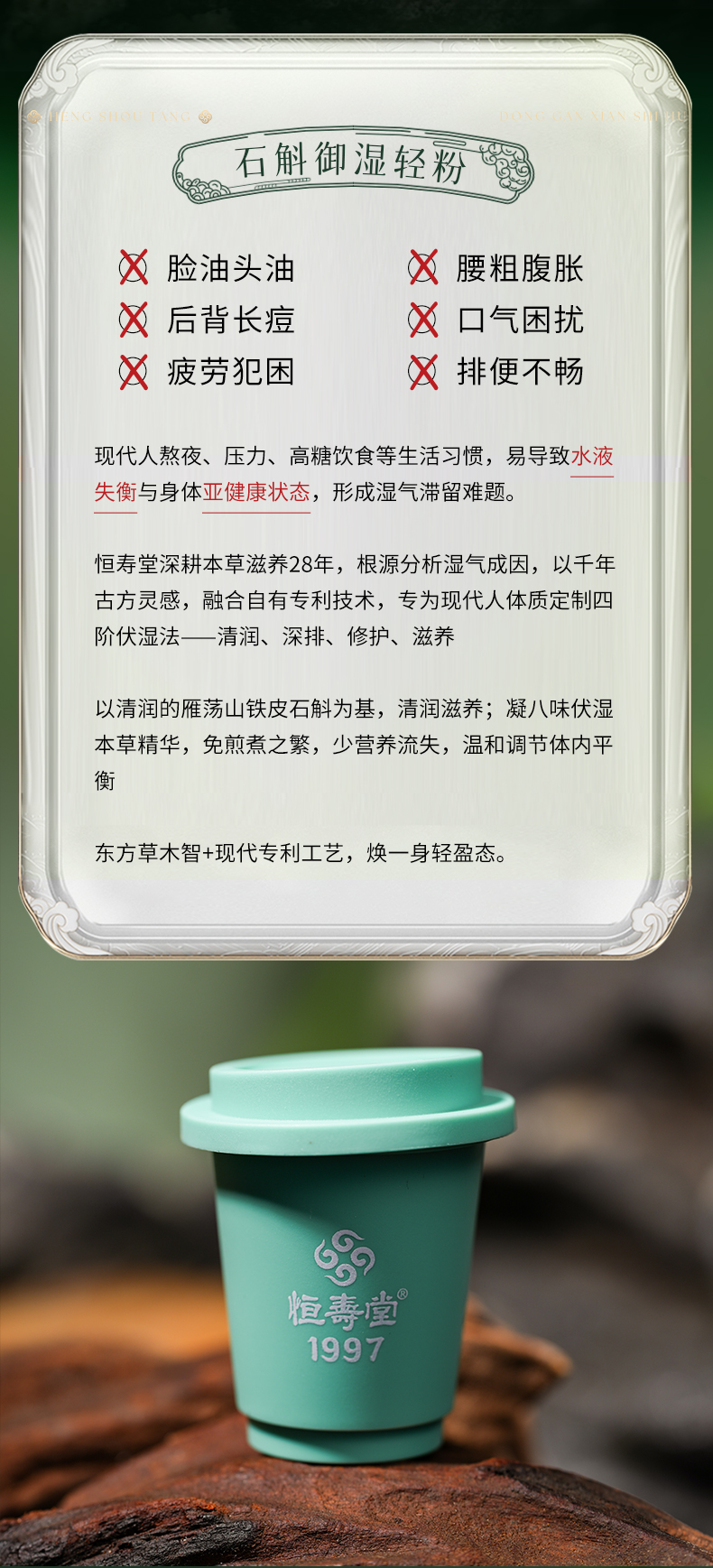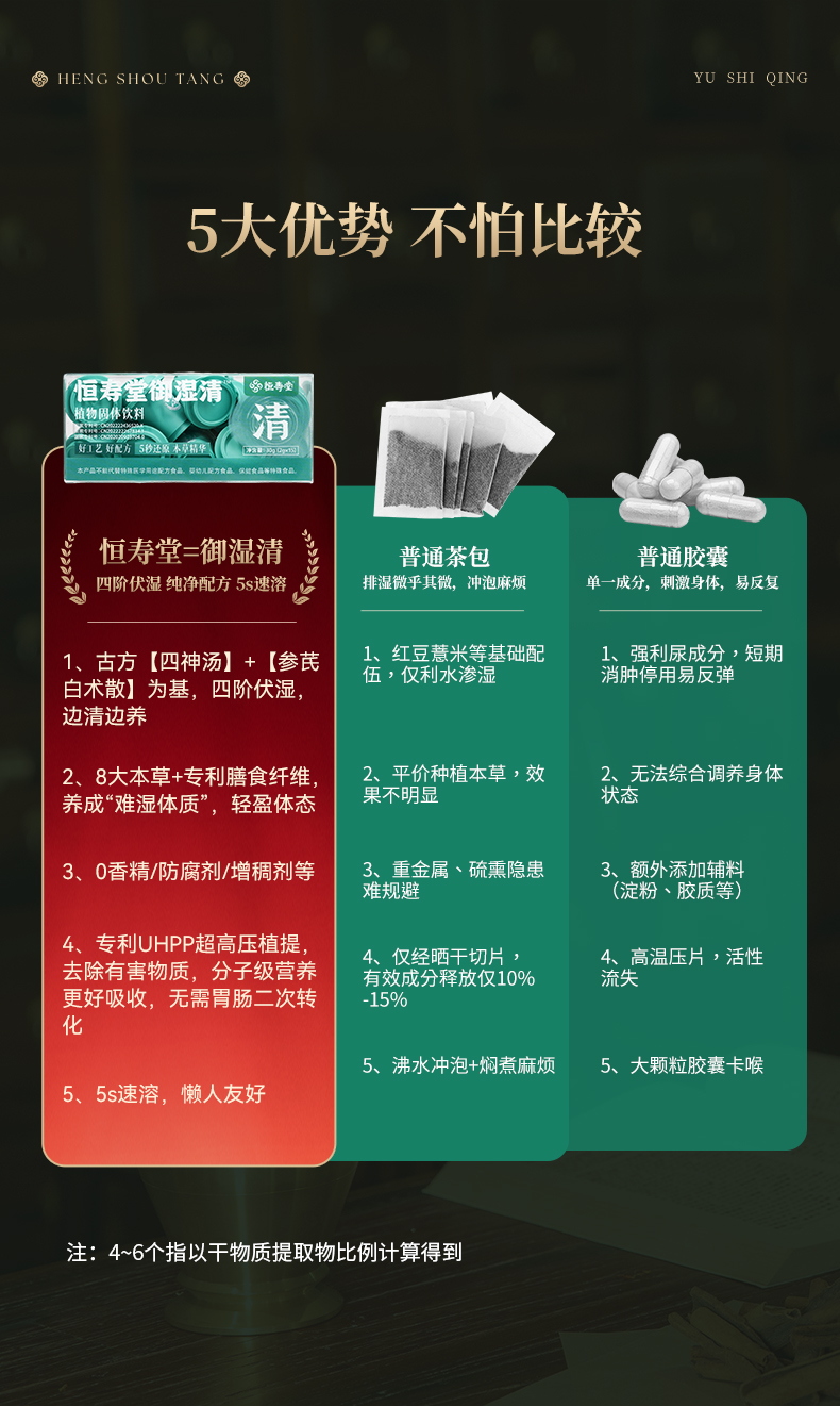 【本草精粹】恒寿堂 御湿清植物固体饮料 2g*15小罐/盒 七大本草复配