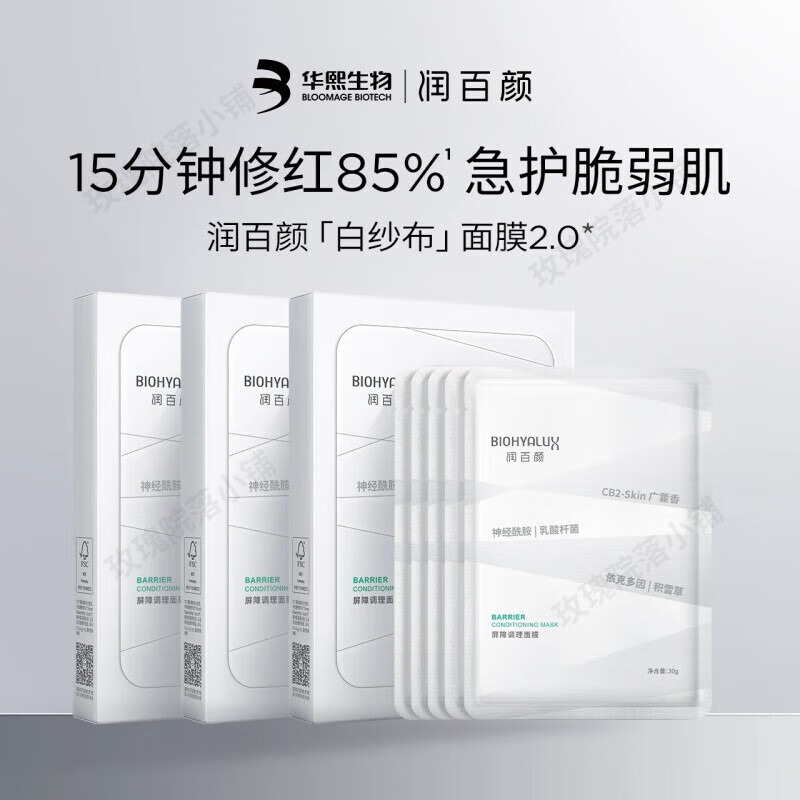 【箱规】润百颜屏障调理面膜 (白纱布面膜)30ml*5片/盒*39盒/箱 新版 升级版 2.0版本