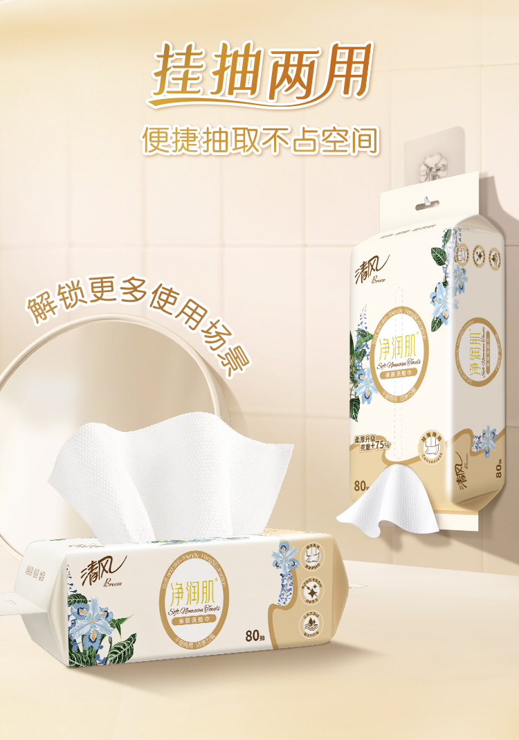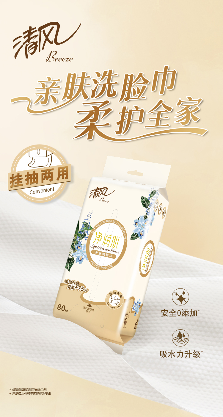 【官方自营】清风净润肌80抽4包绵柔洗脸巾