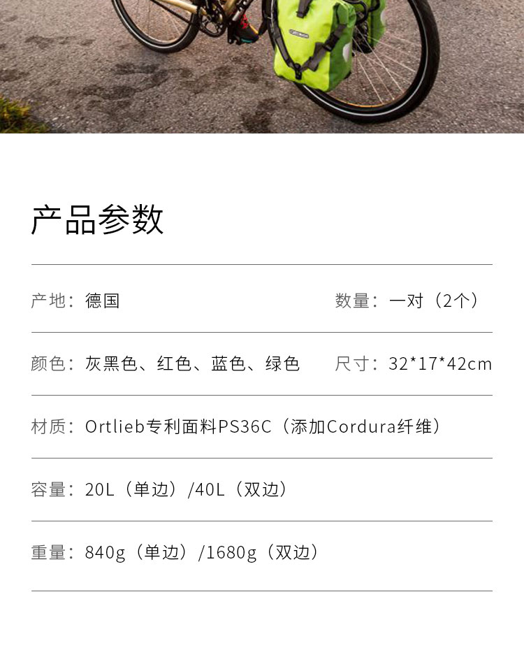 德国ORTLIEB 环球旅行 耐用骑行通勤 全防水收纳 自行车驮包 挂包