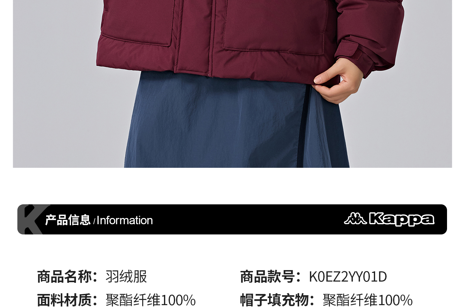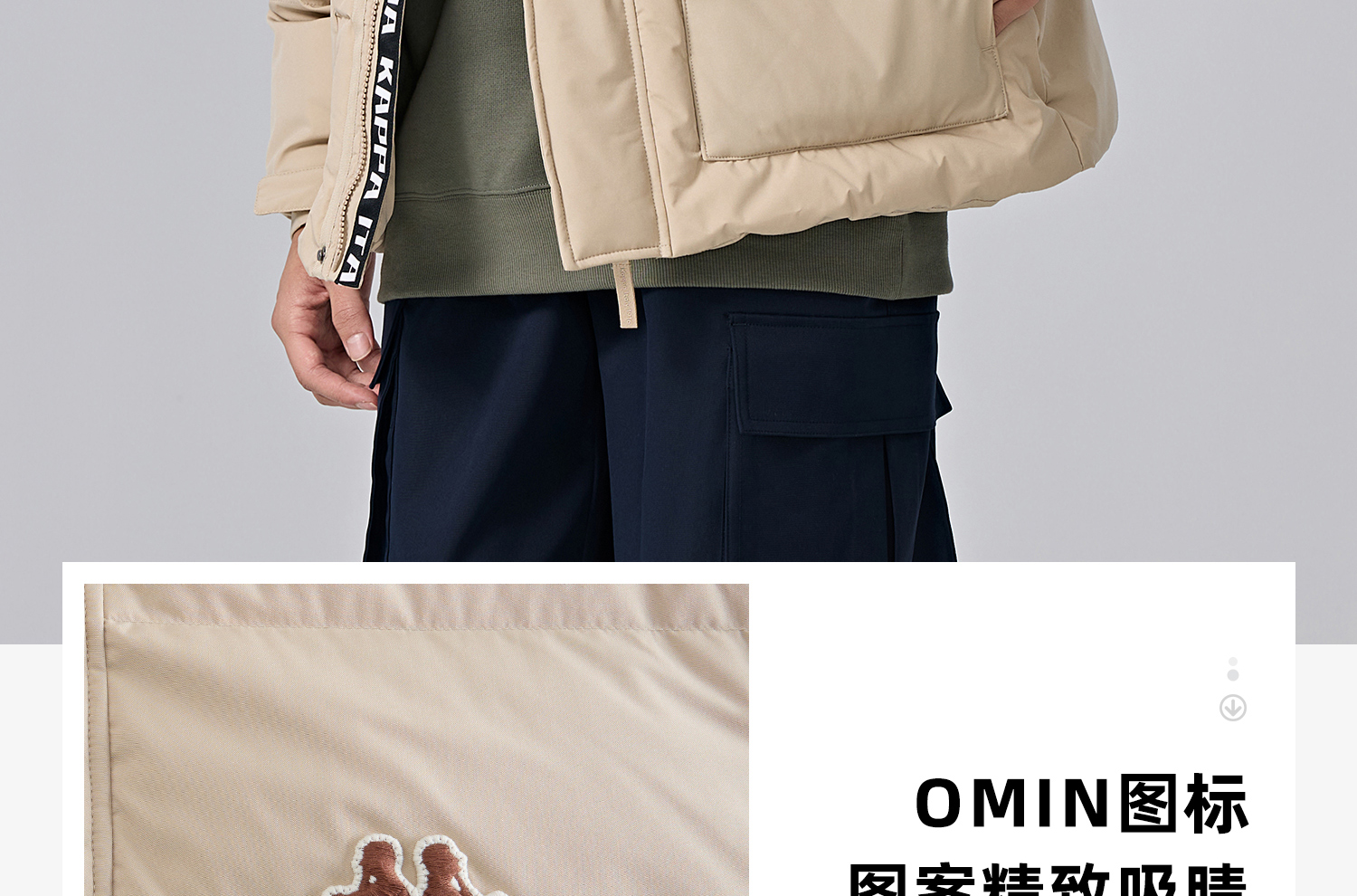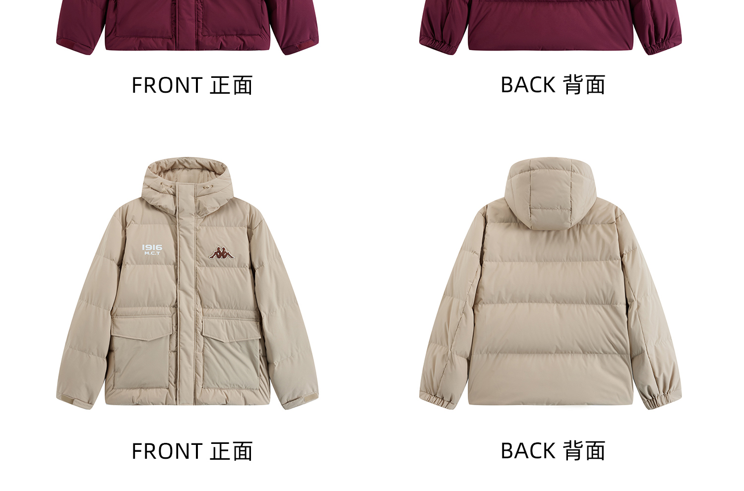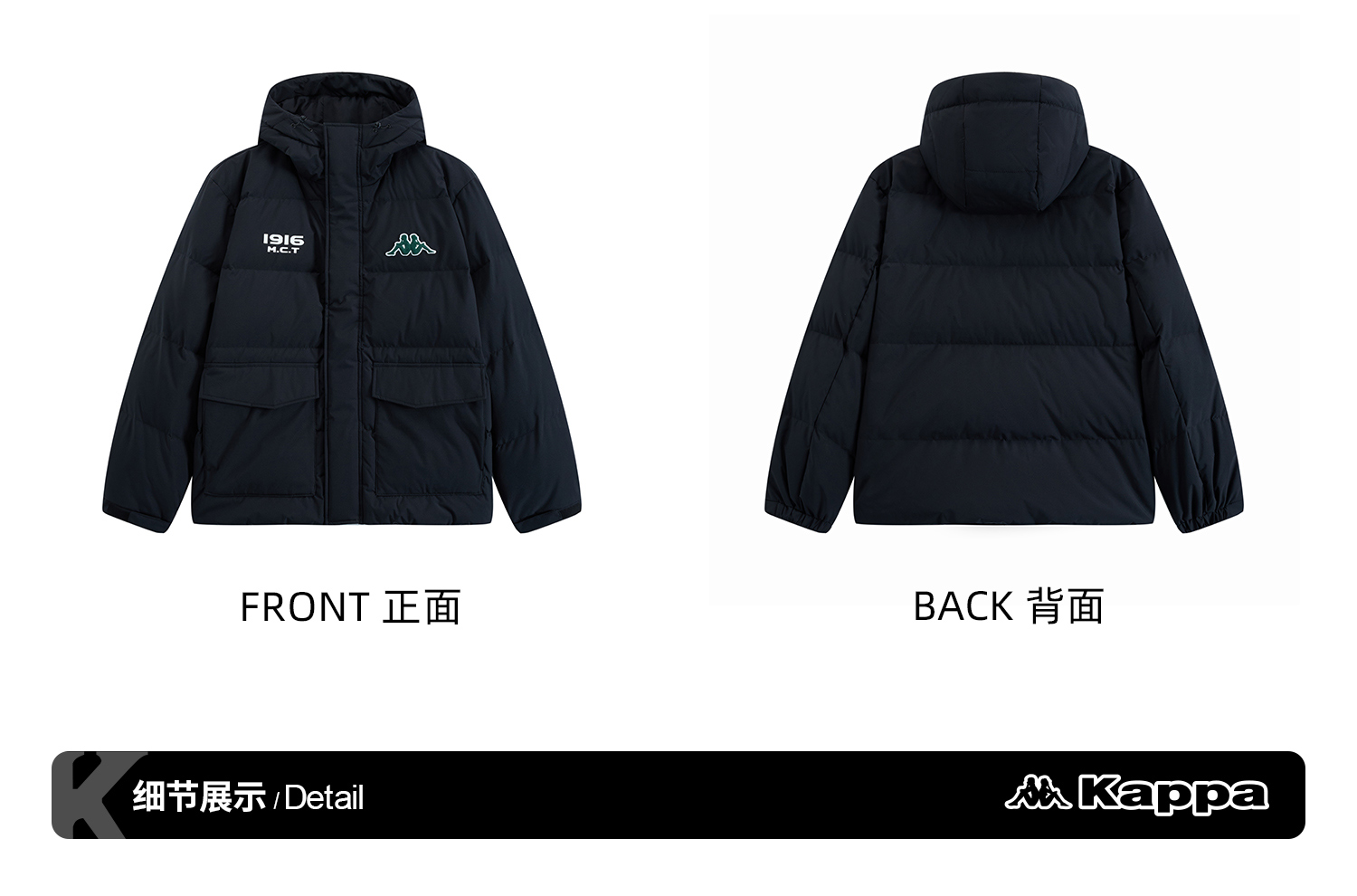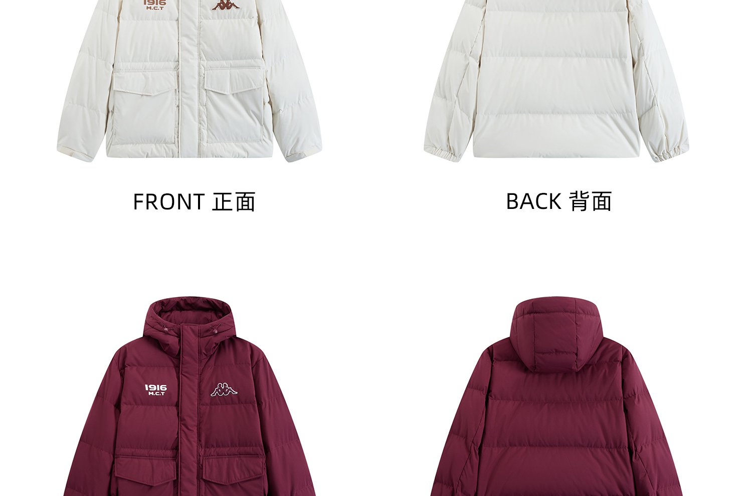 Kappa卡帕背靠背运动羽绒服男2024新款冬户外保暖上衣开衫外套女K0EZ2YY01D