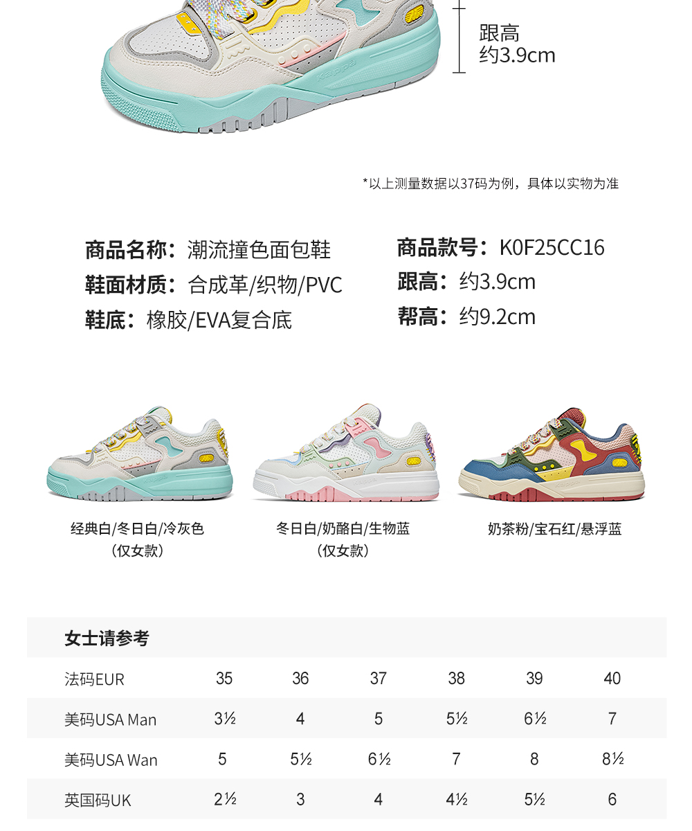 Kappa卡帕面包鞋女款2025春季新款厚底板鞋男女同款运动休闲鞋子K0F25CC16
