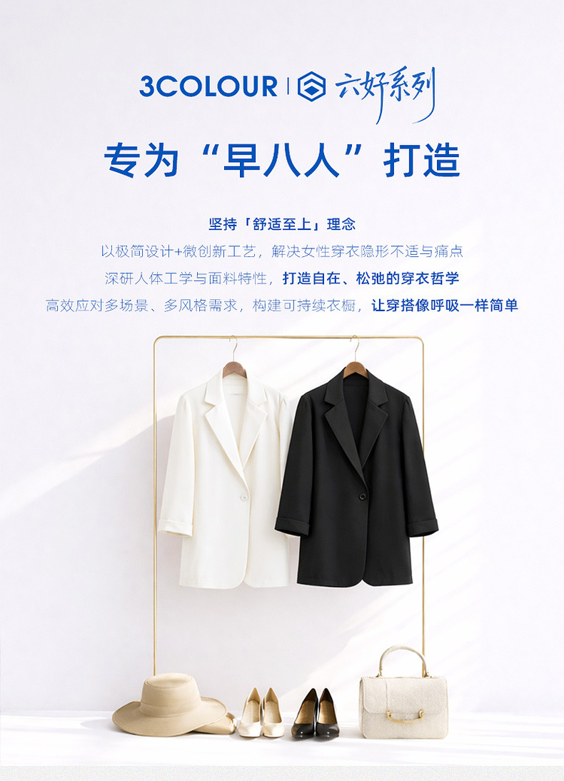 - 3COLOUR,一直致力于探索自我与时尚审美,用穿衣哲学折射生活主张,在流动中探寻恒久。
