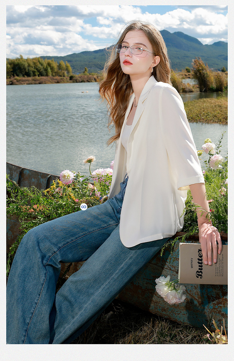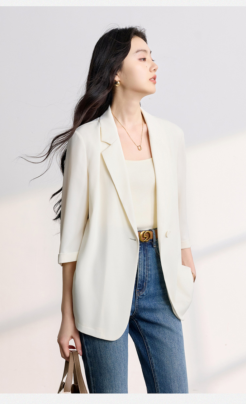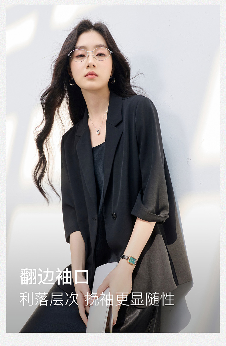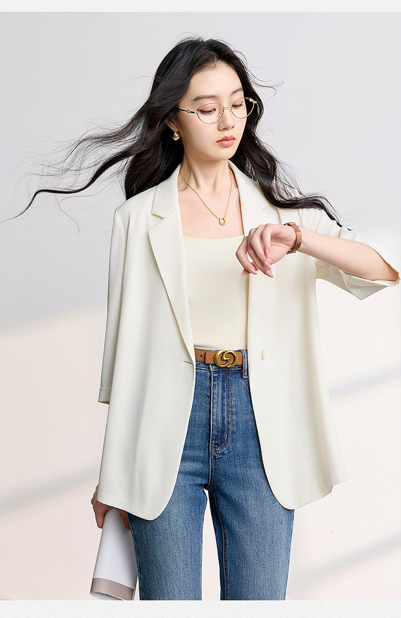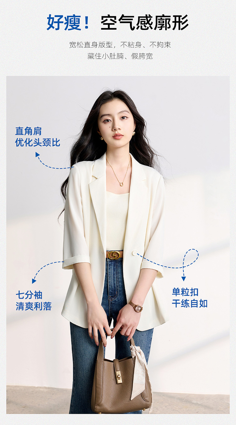 【六好凉感西装】三彩2026春季新款宽松七分袖西服外套通勤气质Z