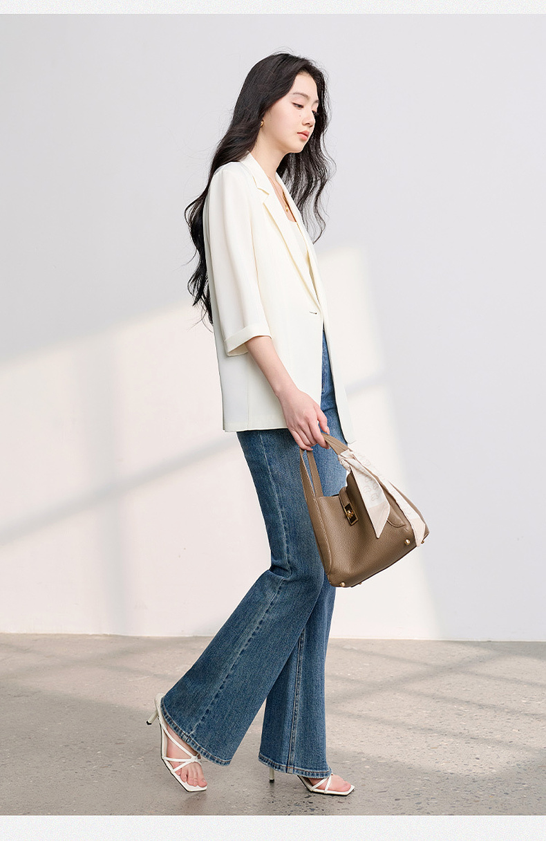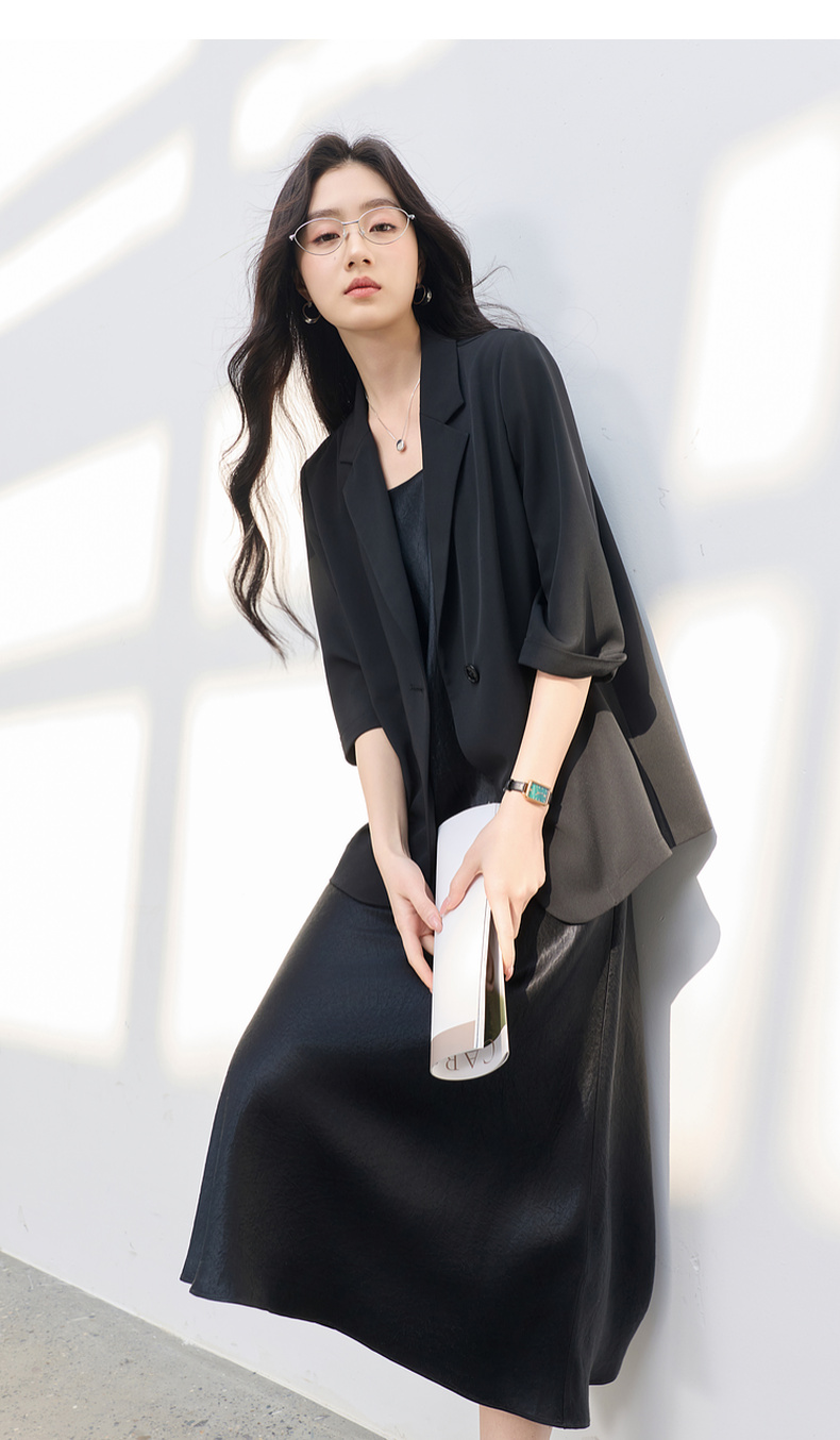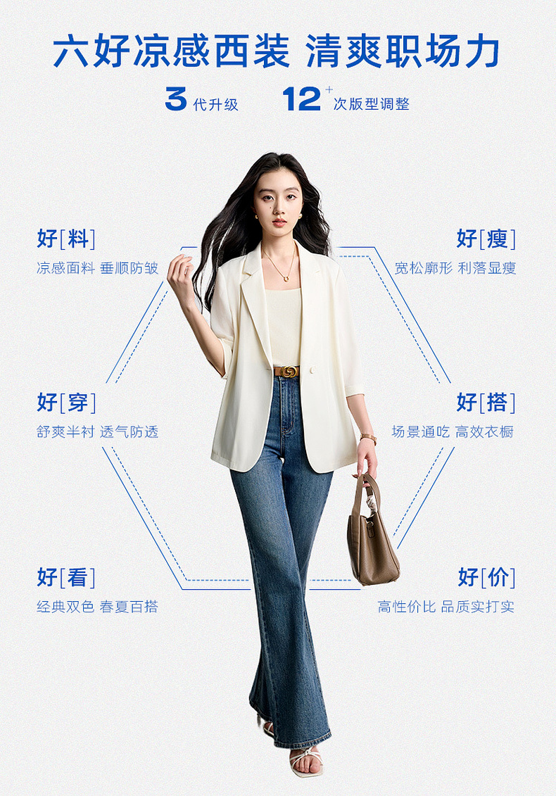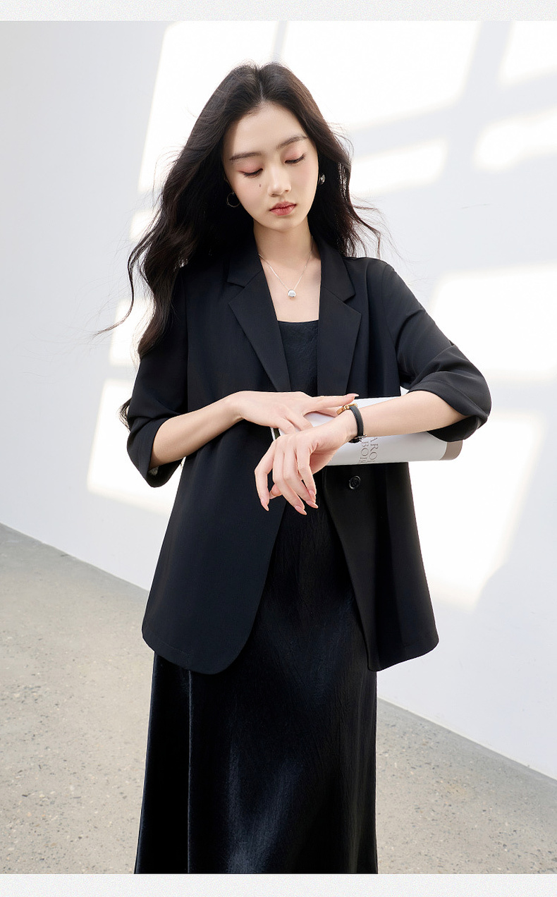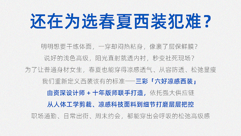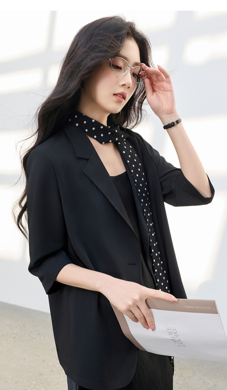 【六好凉感西装】三彩2026春季新款宽松七分袖西服外套通勤气质Z