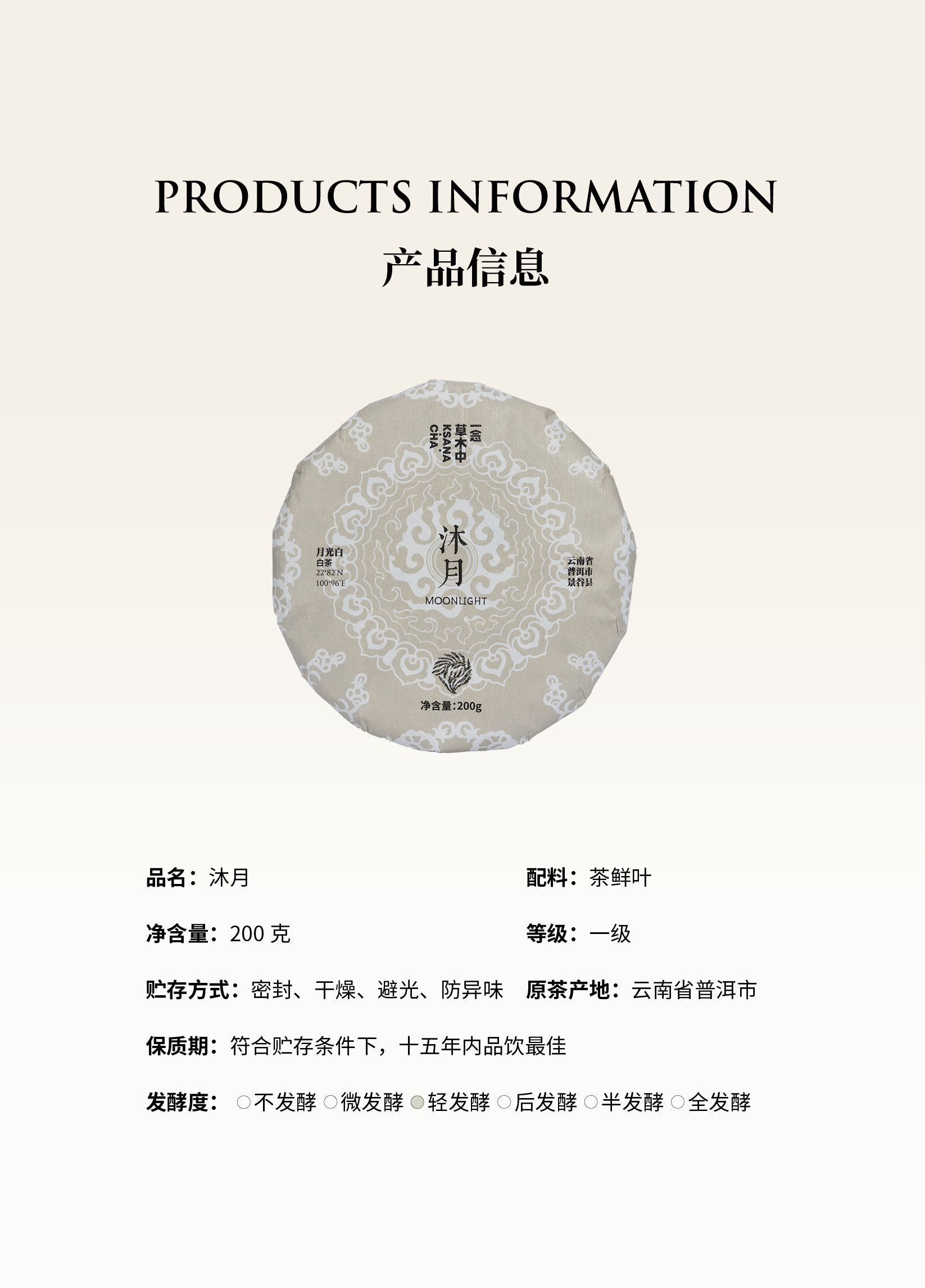 沐月·月光白茶 | 200g/饼|白茶类