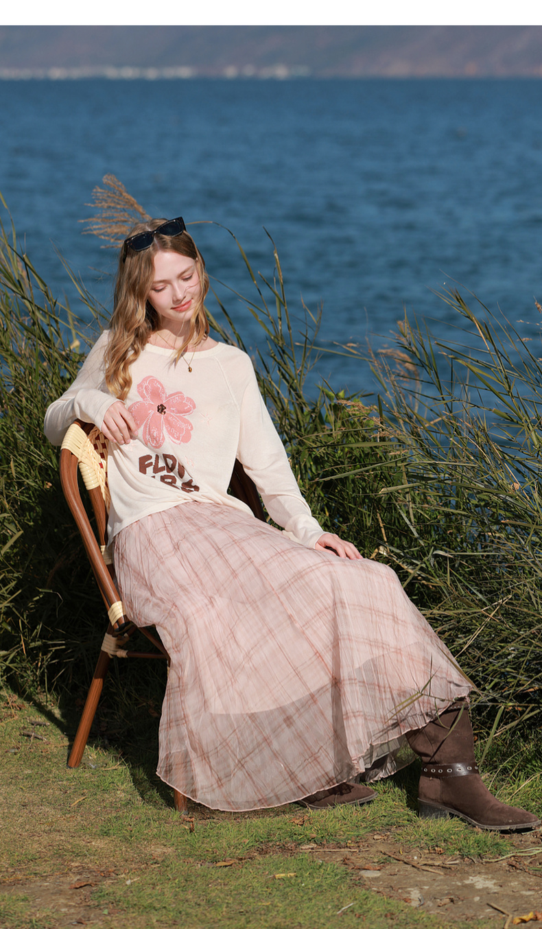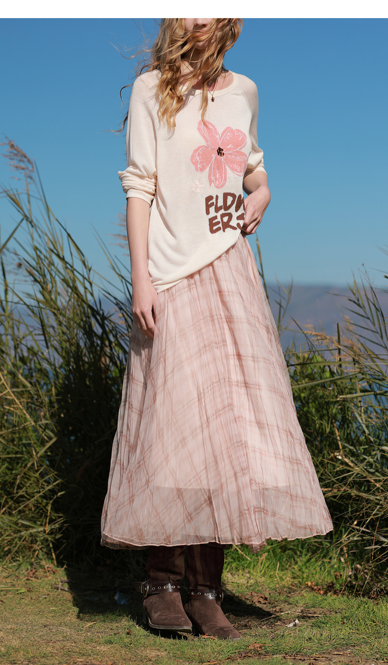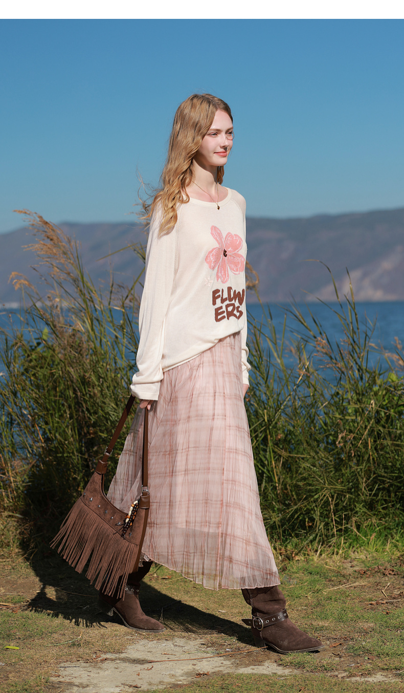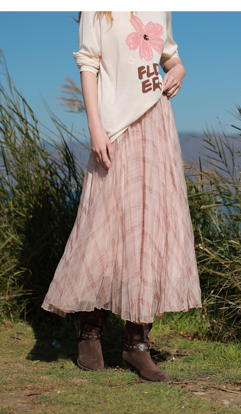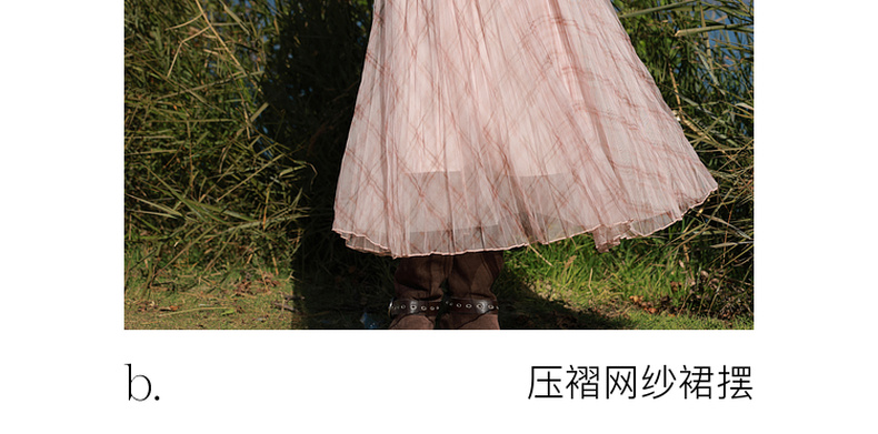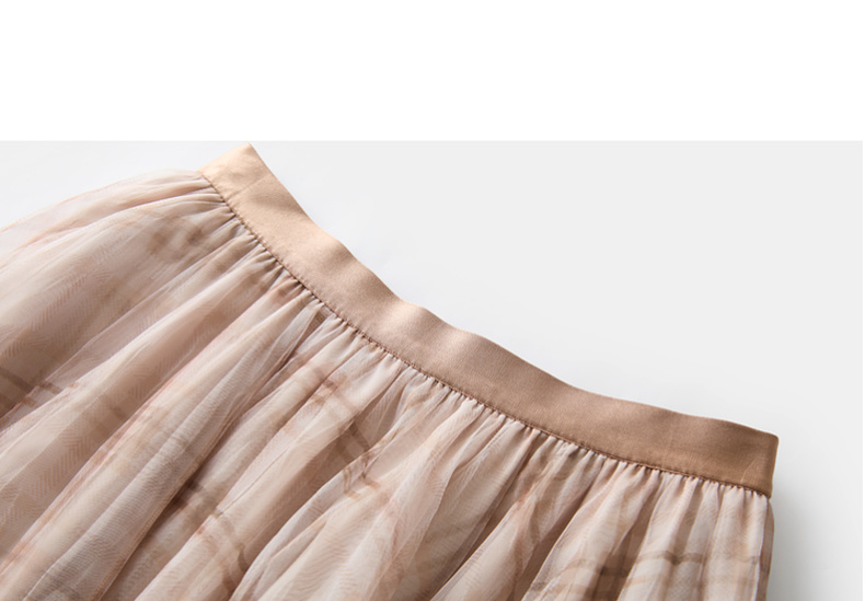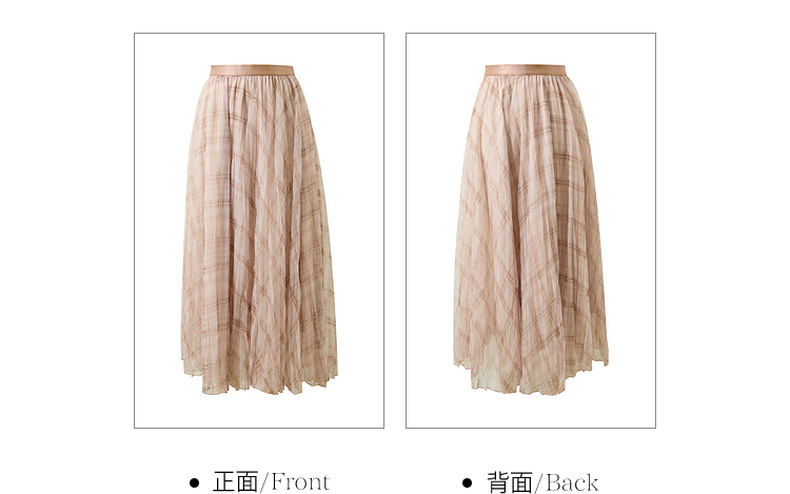三彩2026春季新款复古格纹半身裙高腰A字裙长裙网纱蓬蓬裙M