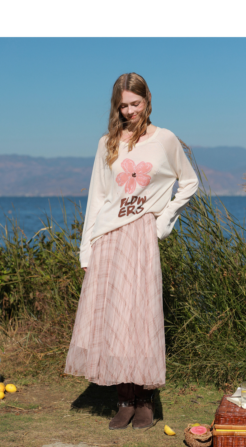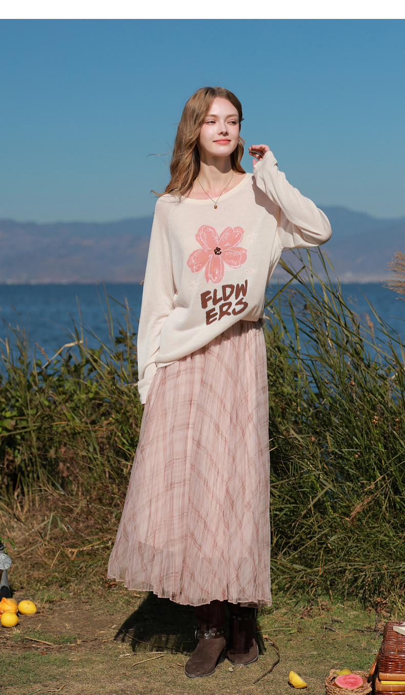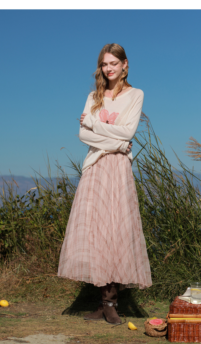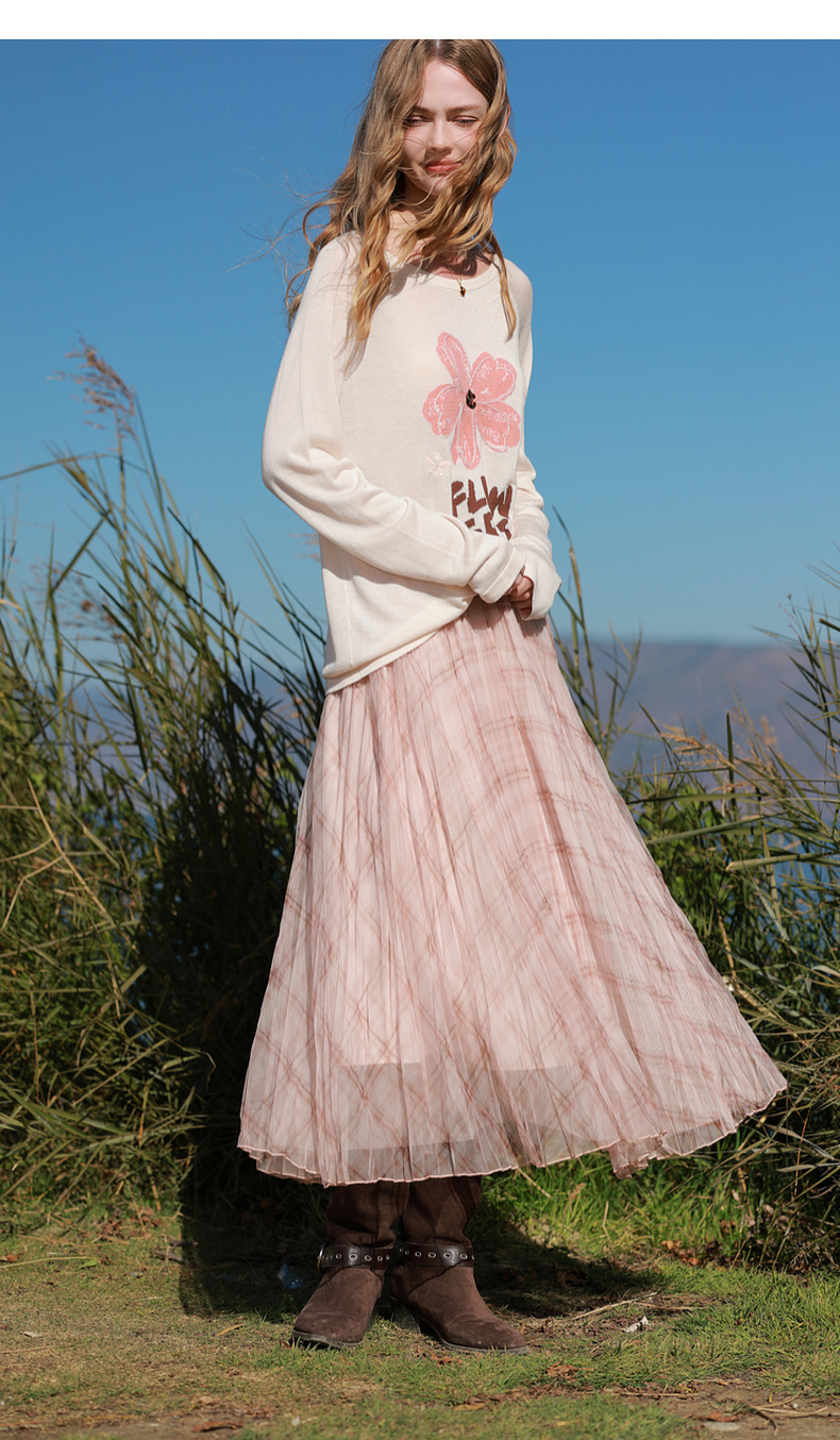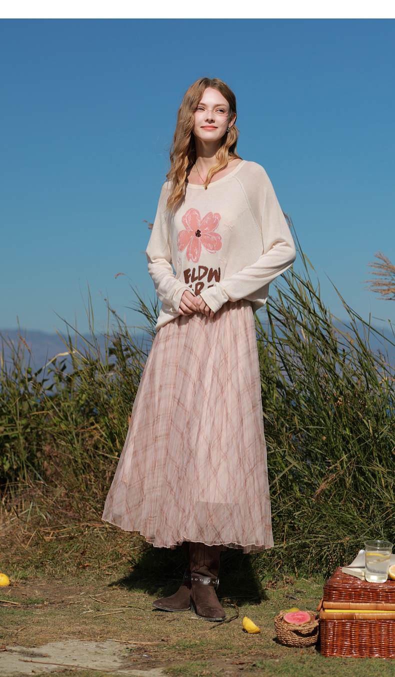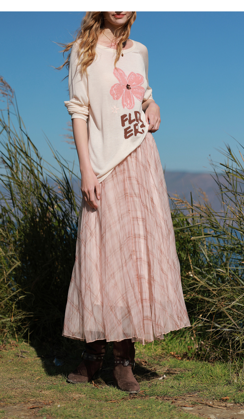 三彩2026春季新款复古格纹半身裙高腰A字裙长裙网纱蓬蓬裙M