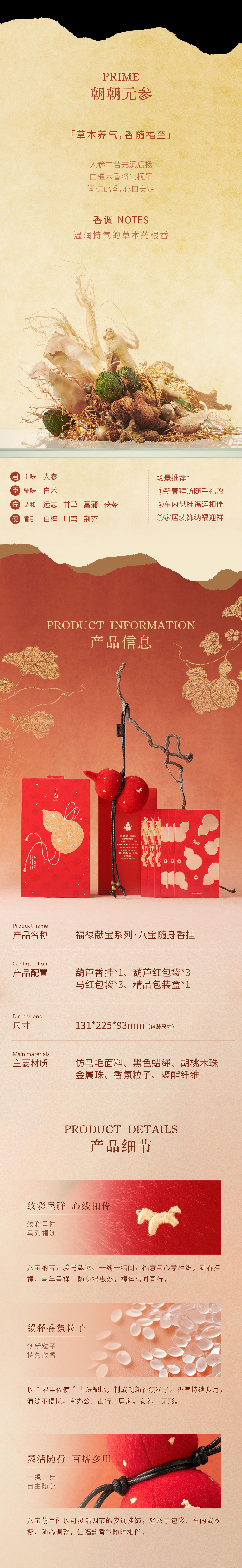 呈白.福禄献宝系列香挂 ,葫芦藏福,八宝添禄,非遗草本香舒心