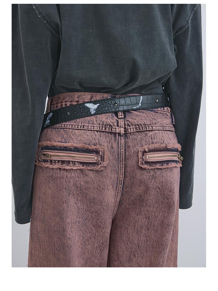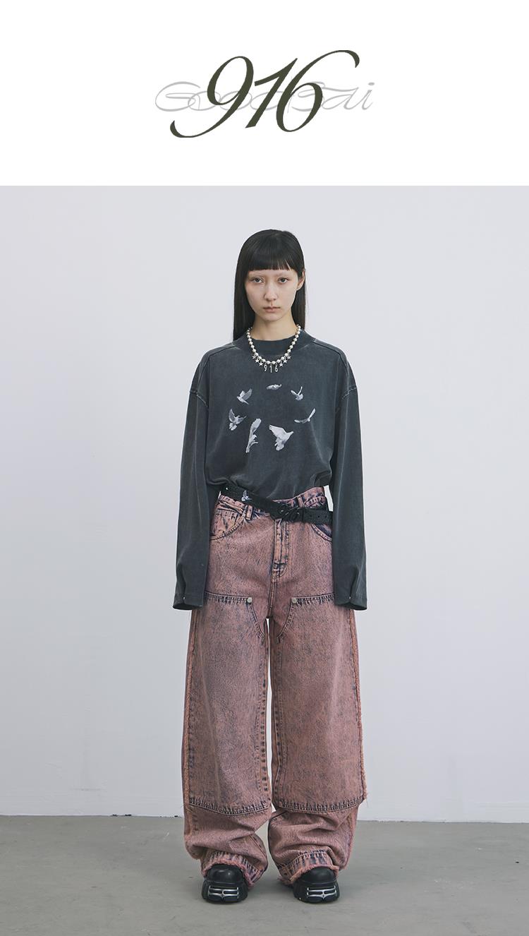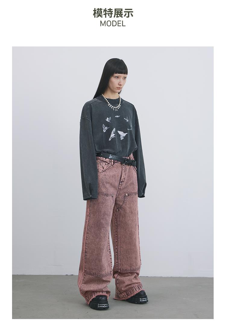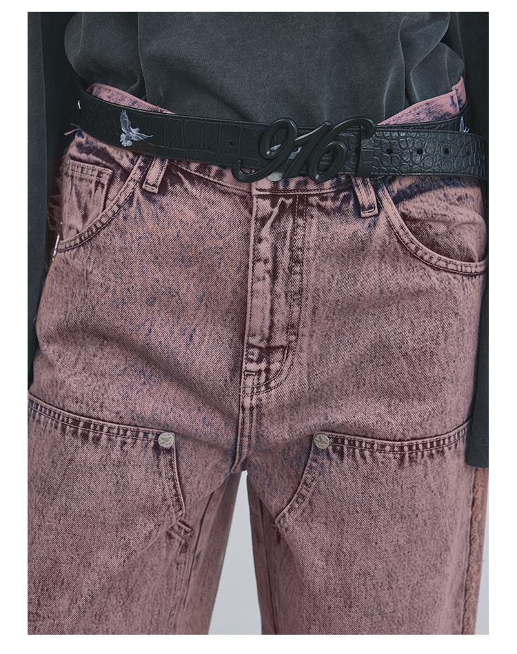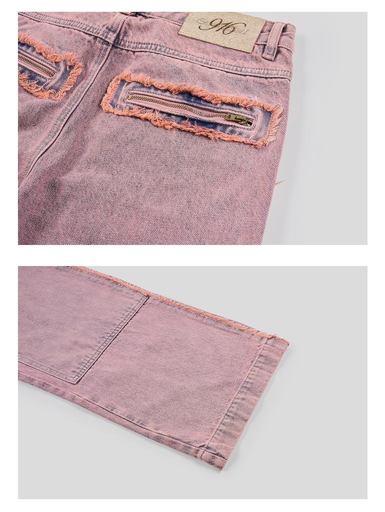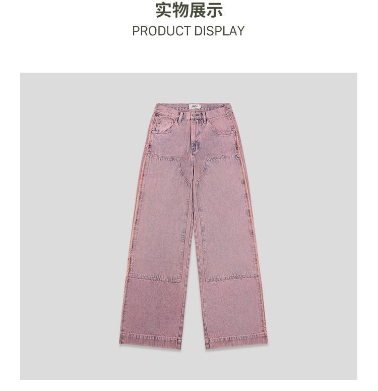 GOODBAI 916 套色牛仔膝盖补强直筒裤
