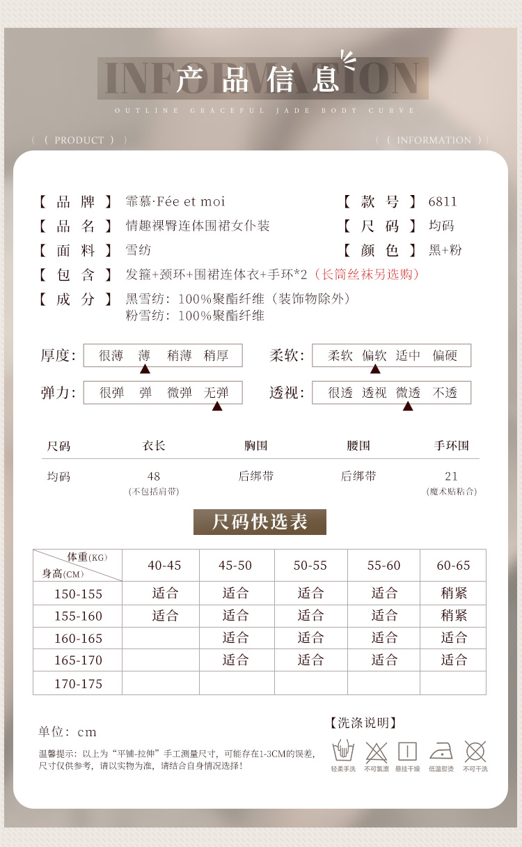 【情趣内衣】霏慕 情趣裸臀连体围裙女仆装6811