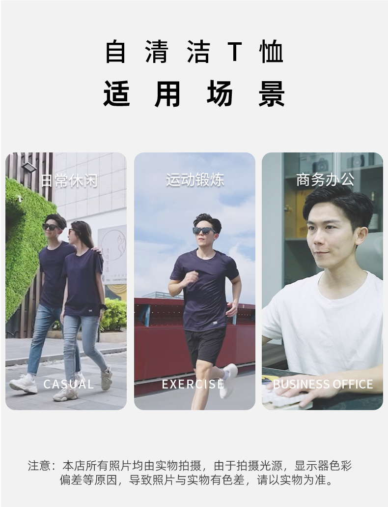 量橙 自清洁速干致冷T恤 能达到自清洁效果的T恤,采用超材料面料,无需洗涤剂清洗,只需清水充分浸泡后晾干即可。