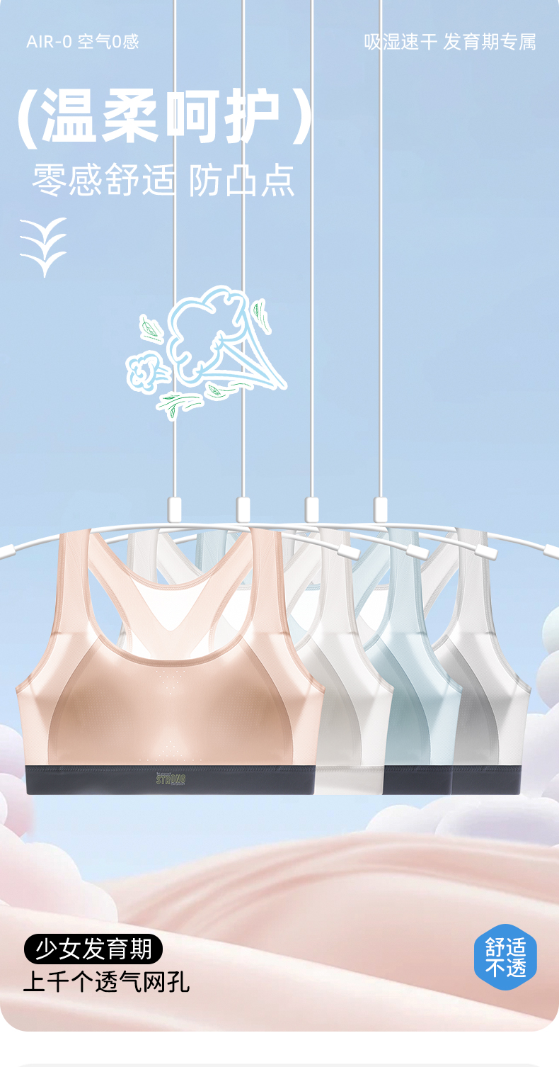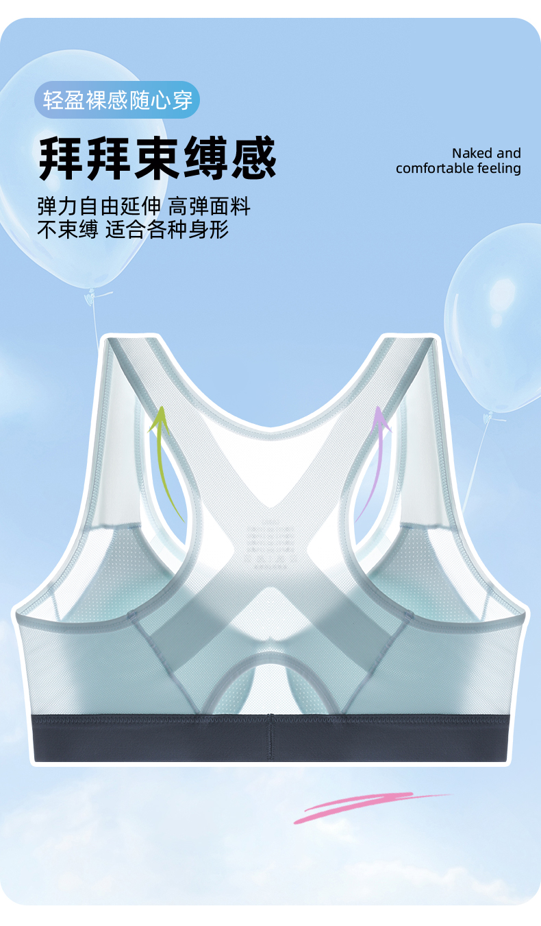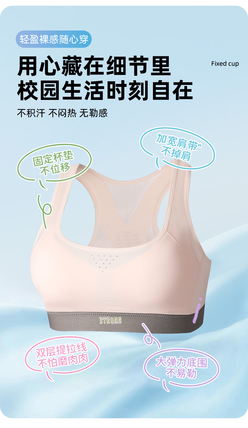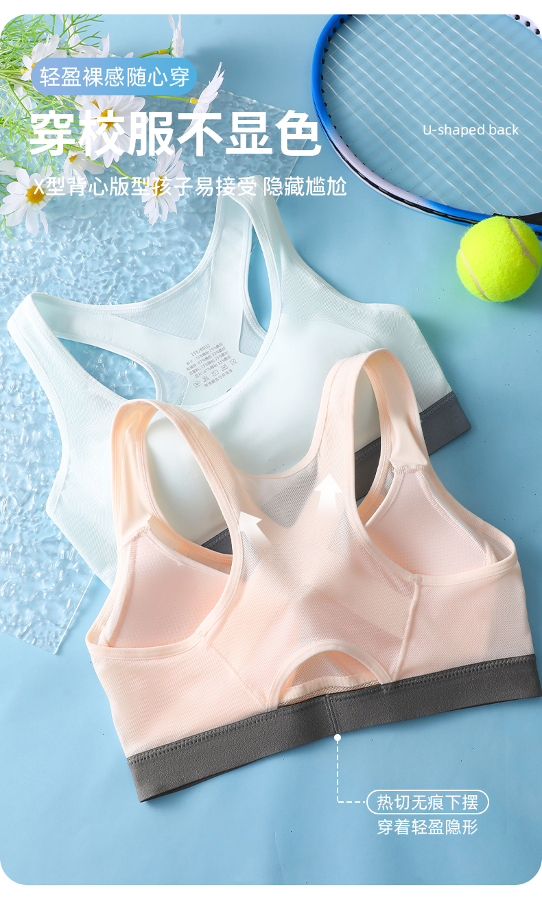 【2件装】杭拍XBX-6052少女固定杯运动防震背心 L-2XL 虾粉/烟灰/水蓝/米白【体育课专属】