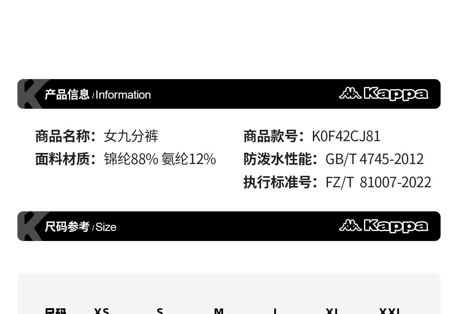 Kappa卡帕背靠背2025新款女士户外防泼水九分裤运动长裤弹力裤子K0F42CJ81