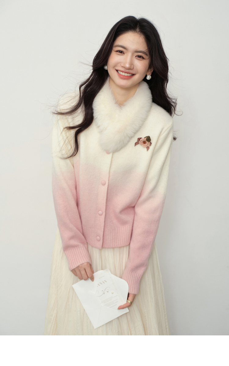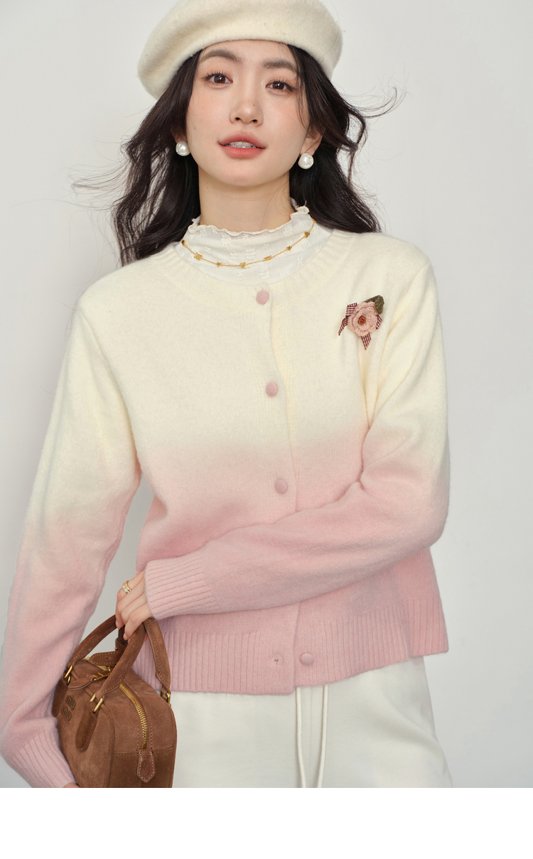 鹿向南「白桃慕斯」渐变色温柔风毛衣秋冬新款时尚圆领通勤上衣女