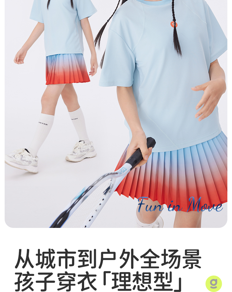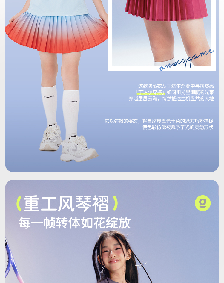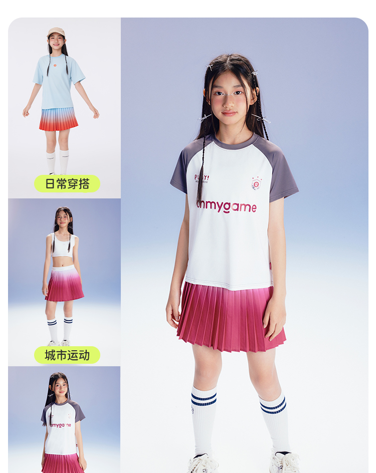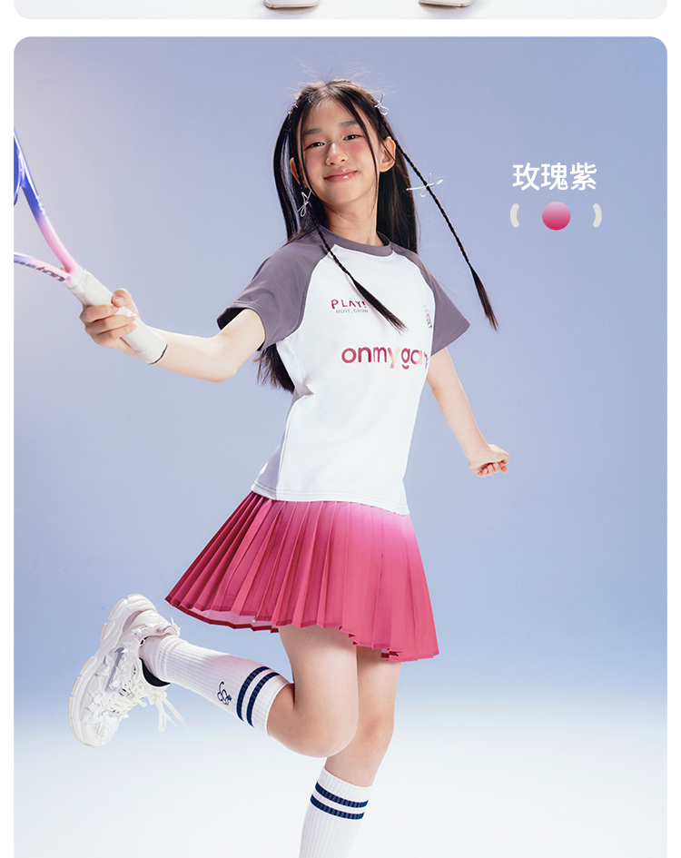 onmygame【轻舞风琴】女童短袖t恤儿童百褶运动上衣夏季2024新款