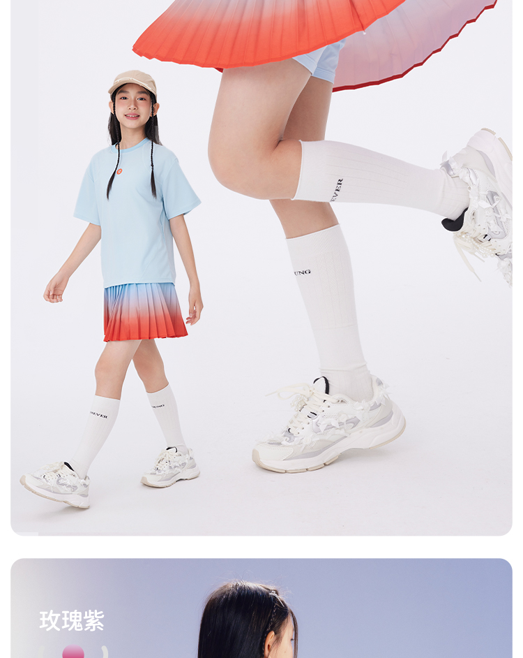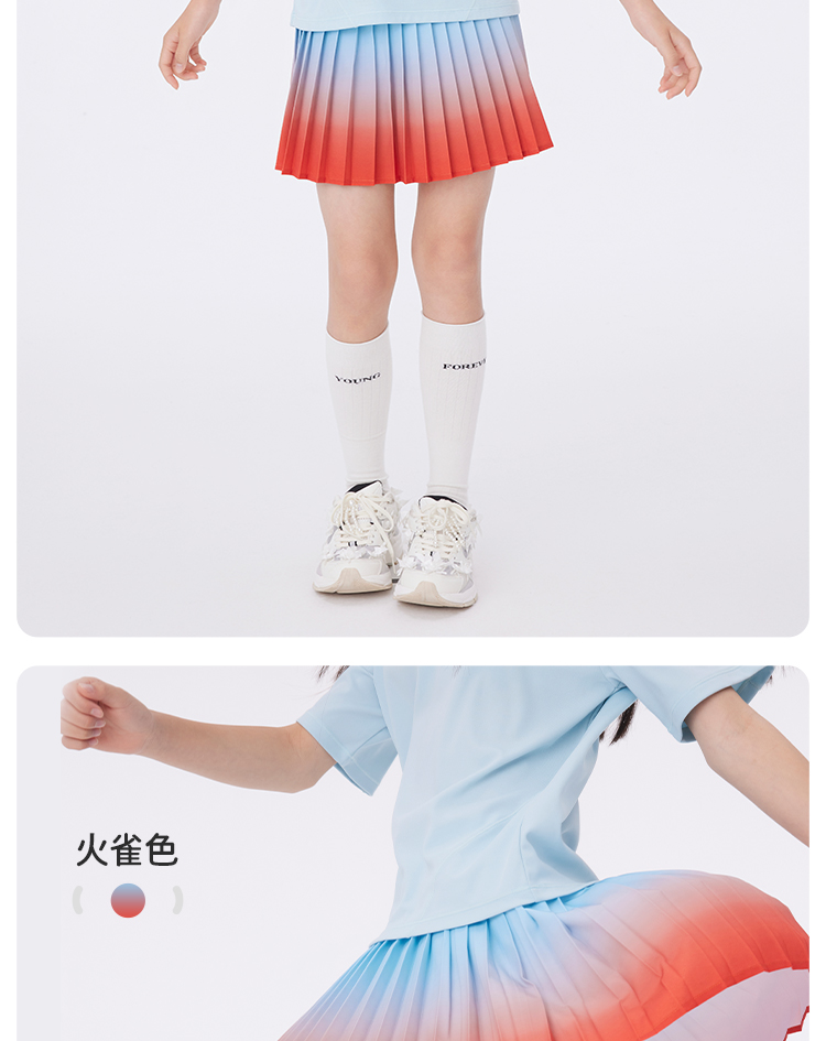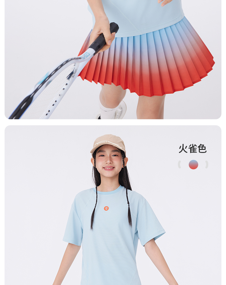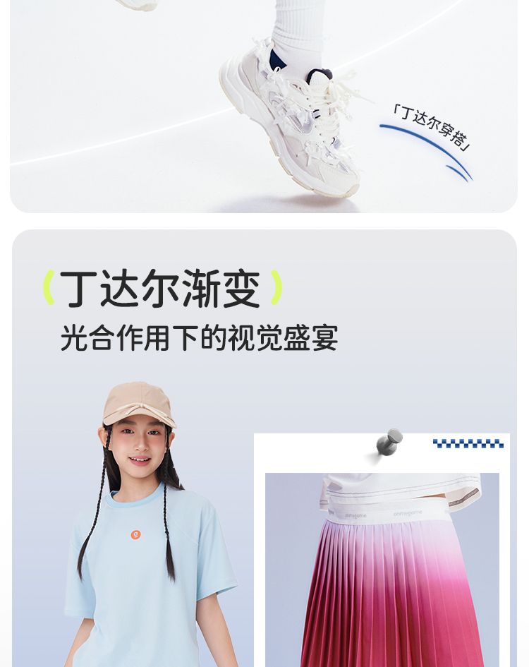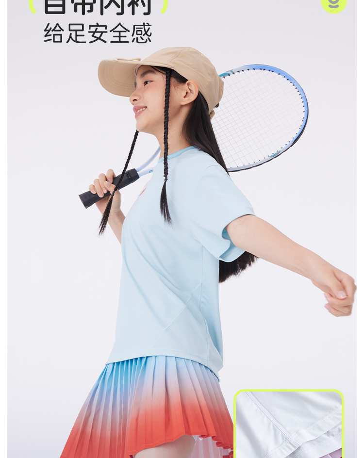 onmygame【轻舞风琴】女童短袖t恤儿童百褶运动上衣夏季2024新款