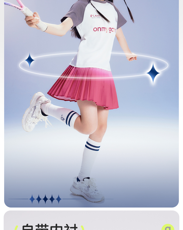 onmygame儿童专业运动品牌男女童款耐脏不易皱,柔软但不软踏