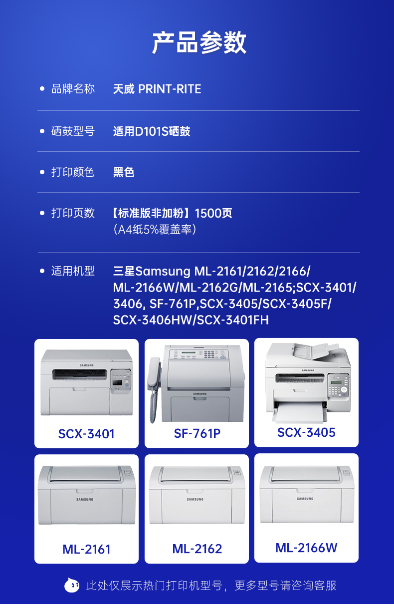天威 D101S硒鼓 适用三星SAMSUNG ML-2161 2166W 2162G 761P 3405 3405F 3406HW 3401FH 打印机
