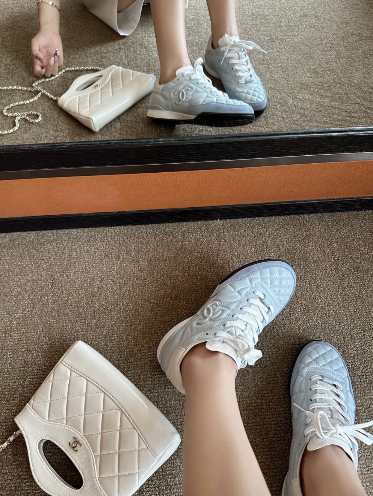 进口高丝光牛反绒皮拼接,同色系搭配越看越舒服!