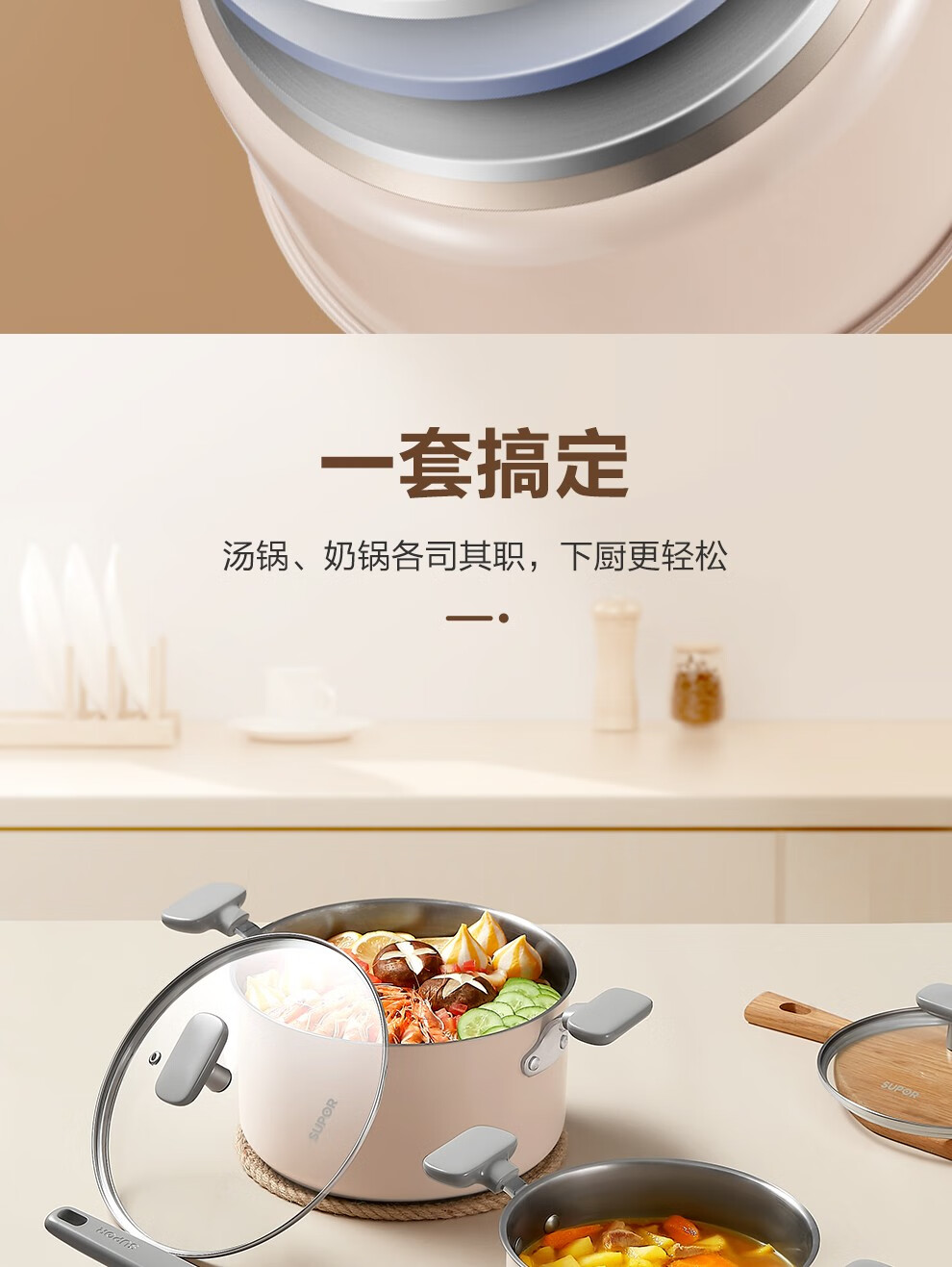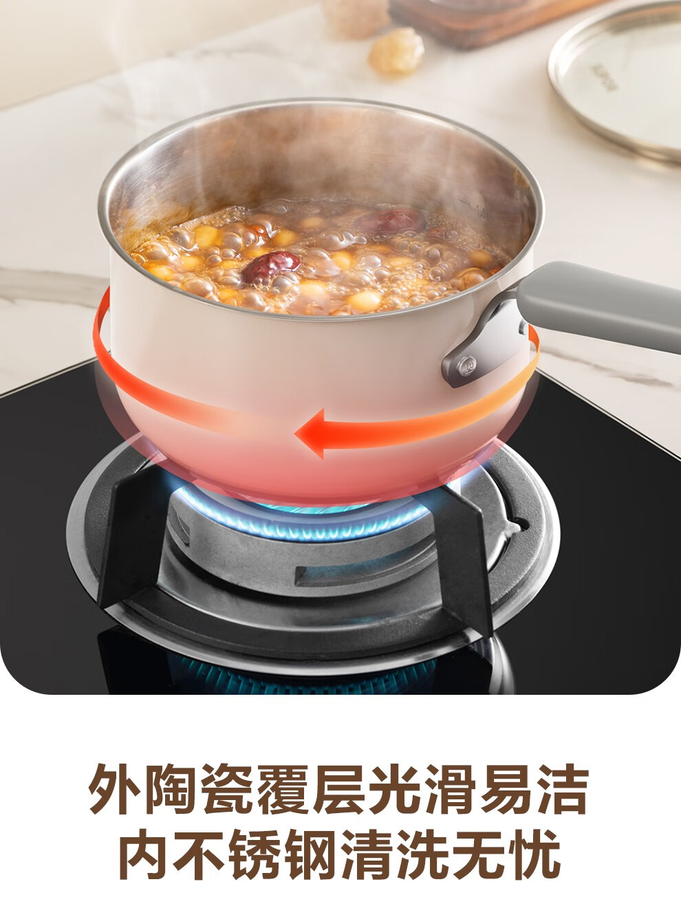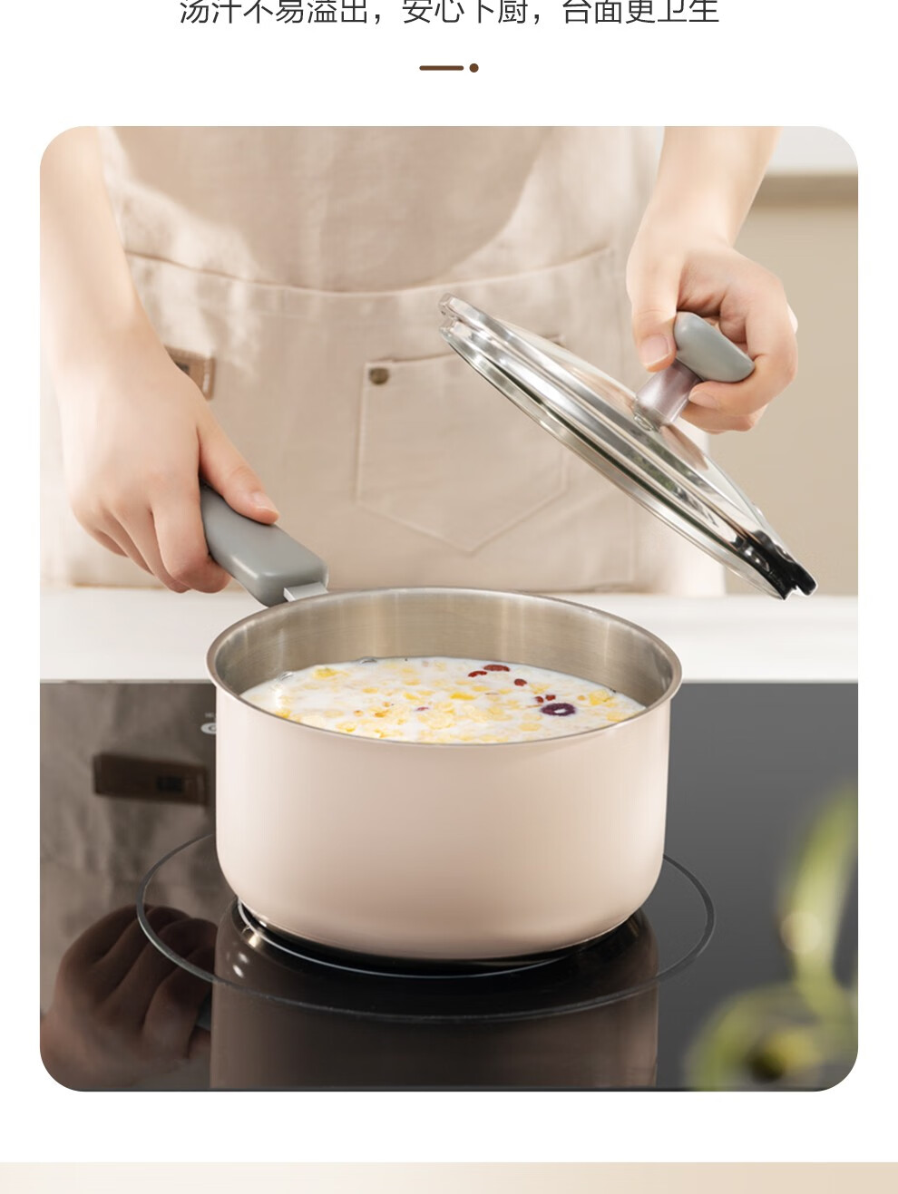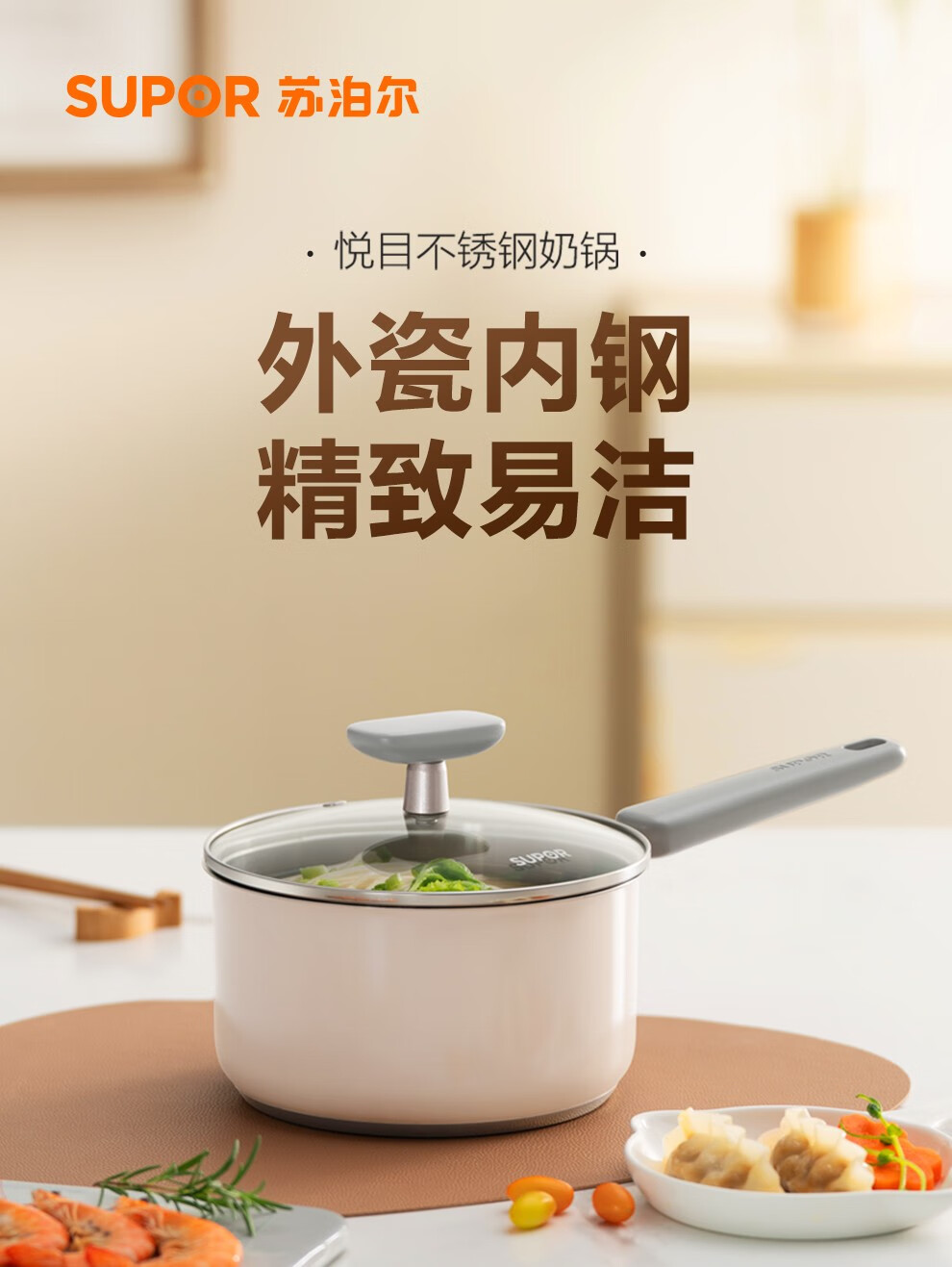 苏泊尔(SUPOR)奶锅外瓷内钢加深不锈钢汤奶锅耐用厨房家用多功能电磁炉明火通用 【2.3L 推荐2-3人用】 ST18JC1